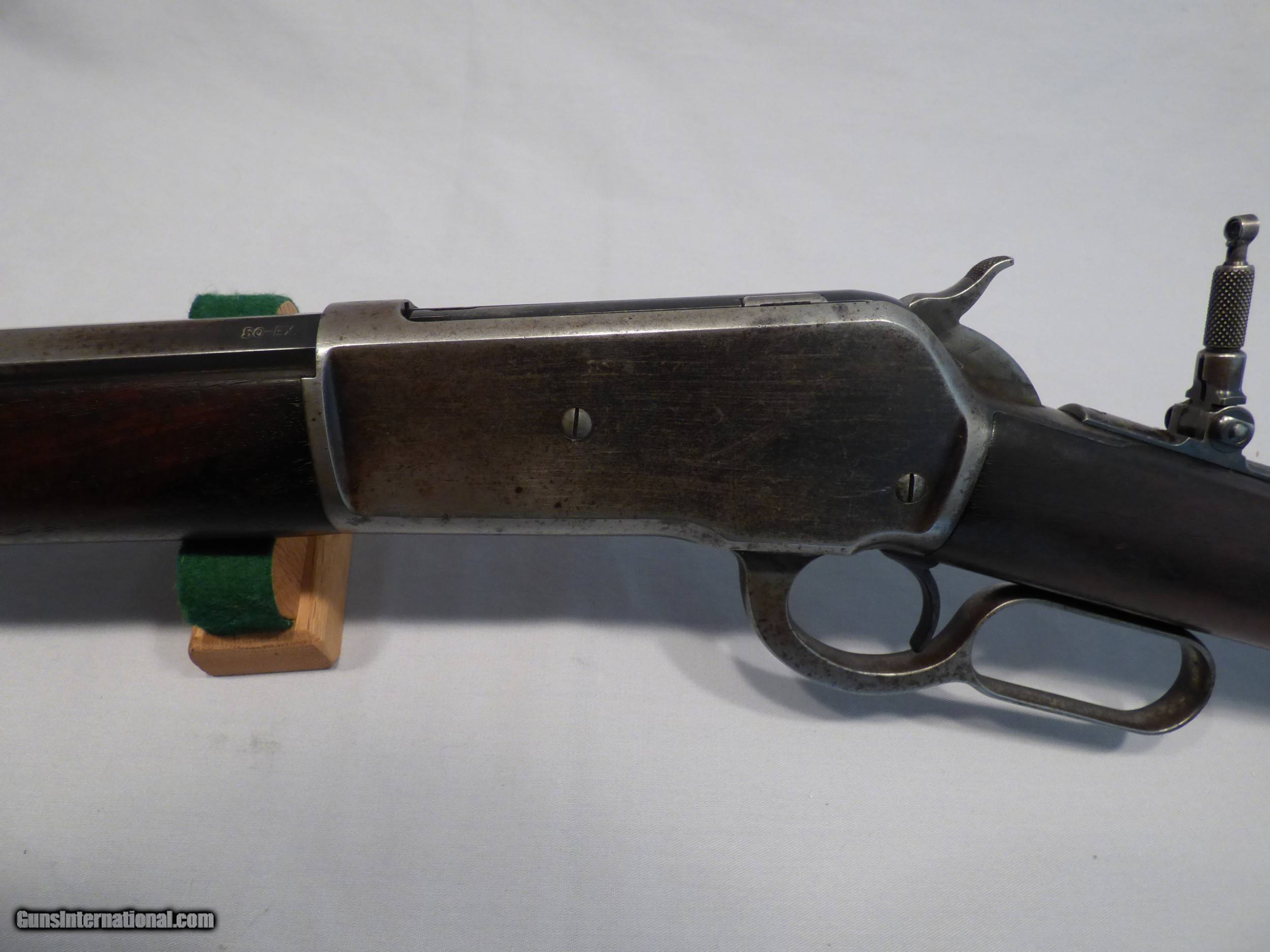 Description: this nice 50 caliber 1886 has a very good bore a 8 from 1 to 10, the receiver bluing has 30%, the octagon barrel and magazine tube is 70% blue, very good wood, express sight with a tang sight. serial number 142xxx made in 1908, letters with Cody. SOLD Curio/Relic: Yes |