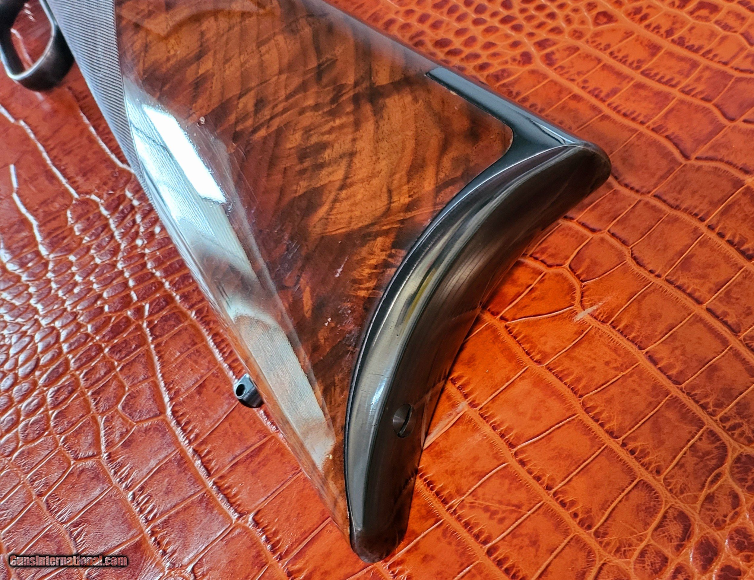 Description: Winchester Model 1886 Deluxe Rifle in .45-90 WCF ***SOLD *** SOLD *** SOLD *** SOLD Description: Winchester 1886 Deluxe refinished by Doug Turnbull and his Team in .45-90 WCF Lever Action rifle. Born 1894 in beautiful refinished condition, clean and well defined barrel. Excellent casehardened blued finish and high gloss walnut. Deluxe checkered grips, this piece is exquisite. A must have for the Winchester collector. Description: Make: Winchester Model: 1886 Deluxe Serial Number: 91955 Caliber: .45-90 WCF Action Type: Lever Condition: Used Relic - Turnbull Refinished Barrel Length: 26" $30 shipping - No Credit Cards - Checks or Money Orders Only! - If you choose to use a credit card you will be charged a 4% CC Fee Get it before this sale is gone! This sale requires an FFL dealer or C&R for transfer.. Please check out all of my other listings. We only sell high quality firearms. Thanks for looking and enjoy! SOLD Curio/Relic: Yes Rifle Caliber: .45-90 Winchester Manufacturer: Winchester Model: 1886 Serial Number: 91955 Barrel Length: 26 Bore: Clean & Like New Condition: Like New-Refinished Metal Condition: 99.9% Wood Condition: 99.9% Bore Condition: 99.9% Barrels: 1 Barrel Type: Octagon Action: Lever Stock: Walnut/Glossy Butt Pad: Color Case Finish: Turnbull Casehardened Manufacture Date: 1894 Item Location: Texas |
