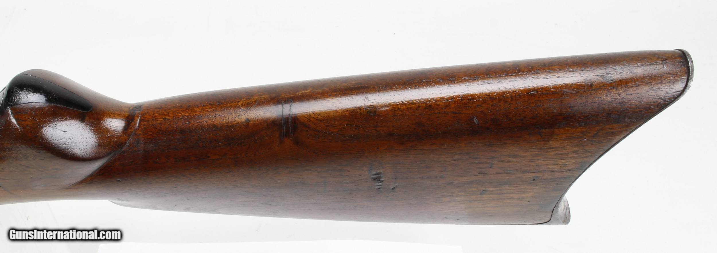 Description: Winchester Model 1886 Semi-Deluxe Rifle in .45-90. SN #16139. Mfg. 1888. 26" octagon barrel. 13" LOP. Button Magazine. Early date crescent buttplate. Non-checkered Walnut pistol grip stock and forend. Forend cap. Bore is good to very good for age, frosted with clear rifling. Wood is also good to very good with some dings and handling marks. Barrel is turning a nice brown patina while still retaining some of the original blue in spots. Smooth action. A rare rifle in a hard to find caliber. This is an antique and requires no FFL to purchase. SOLD Antique: Yes |