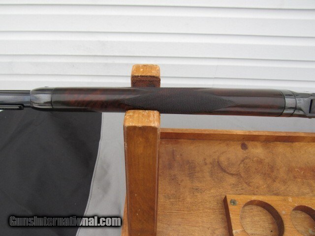 Description: *** CONSIGNMENT ITEM, ALL PRICES OFFERED MUST BE APPROVED BY CONSIGNOR - LISTING A SMALL PORTION OF A LOCAL COLLECTOR'S COLLECTION *** Winchester Model 1894 Full Deluxe Extra Lightweight Short Rifle with Cody Verification, serial number 90299 made 1897 per the published Madis serial numbers, which is what the ATF goes by to determine antique or C&R/modern status despite Cody records showing manufacture and shipping in 1900. This rifle sports 12 special order features per the verification sheet - round 24" barrel (2" shorter than standard), extra light, checkered stock, pistol grip, special front/rear/tang sights, 1/2 magazine, shotgun butt with rubber butt plate, takedown frame and oil finish. The plain trigger. blued finish, and typical rifle length fore arm are standard features. Caliber is 30 WCF aka 30-30 Winchester. CONDITION: All metal surfaces have a high-quality, professional restoration with only very minor wear and light wear to the serial number and upper tang address; no extra holes in upper tang when sight is removed. Checkering is still original, not freshened. Take down feature is tight with no wobble. Tang sight is marked "S" for the Winchester 1885 Single Shot model, so it has been changed out. Beautiful fire grain XXX walnut stocks are in excellent condition, having a later layer of varnish added during the restoration, with some usage marks and a small chip lower left of butt stock. Butt plate also chipped there, otherwise intact and original. Assembly numbers match on lower tang and upper inletting of butt stock. Excellent, bright, shiny bore with sharp rifling, light wear, no pitting, no rings or bulges, a 9 of 10. Action is crisp with a strong hammer spring and properly working half cock safety. This is a beautiful example of an extra light full deluxe short rifle that if in original condition with this much finish would bring 15K to 25K; can't turn back the clock and figure out why it was restored as there's no signs of pitting underneath the new blue, so asking price reflects the current condition. Cody sheet will be provided with rifle. TERMS: Per ATF rules, this rifle is antique by serial number and can be shipped directly to you assuming your local laws allow it. New York State buyers must have the item ship to an FFL dealer only, no C&R, no exceptions. 3 day non-firing inspection. Buyer pays return shipping. Payment by personal check, bank check, or USPS money order only, sorry no credit cards, no electronic payments. Have a competent gunsmith give it a clean bill of health before using as it has not been test-fired. Packed with great care to survive the trip. Ships by FedEx Ground. Antique: Yes Rifle Caliber: .30-30 Winchester Manufacturer: Winchester Model: 1894 Serial Number: 90299 Barrel Length: 24" round Condition: Excellent Metal Condition: Excellent Wood Condition: Excellent Bore Condition: Excellent Barrel Type: Nickel steel Action: Lever Triggers: Standard/plain Stock: Checkered fancy walnut Butt Pad: Hard Rubber Sights: Special order (all) Manufacture Date: 1897 Extras: several Item Location: New York Price: $3,450.00 Shipping: $50.00 Buy Now Contact Seller |