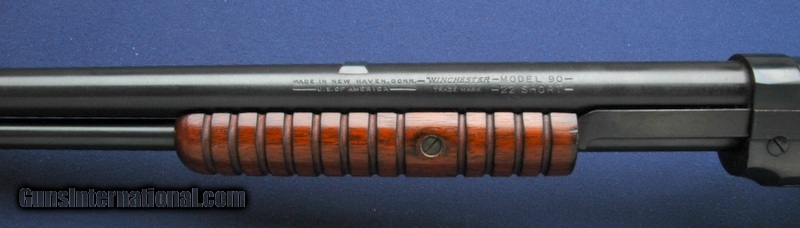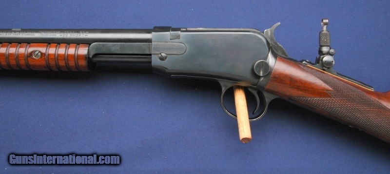 Description: Chambered in .22 Short, these were often referred to as "Gallery guns", because they were commonly used in the shooting galleries at amusement parks and such. In this service, they were used hard, put up wet, and often not cleaned very well. This example is very nice. It carries a Lyman peep sight on the top tang. It has a mint, bright bore and has likely not been shot in many, many years. Serial numbers for these guns are a little sketchy, but it looks like this one was built in 1907. All markings are clear and crisp. Blue is gorgeous, with different tones in different places on the gun, some wear on the bottom tang from being carried. We have different opinions over here as to whether or not the sideplates have been reblued. Wood stock and fore end are in excellent condition, just a few scuffs but no cracks or damage otherwise. Buttstock has been replaced at some point (but is very, very nice) and the buttplate is from an Ithaca. Check the pics for yourself and see what you think! In order to protect your investment, all long guns over $500 must be shipped in a hard case. Minimum shipping at this level is $55 and includes the hard case. Shipping cost could increase depending on value or weight of the firearm. For long guns less than $500, we still recommend the purchase of a hard case, again to protect your investment. These numbers are for shipping to the lower 48. There is also a 3% surcharge for customers using a credit card on internet sales. Thank you! SOLD |