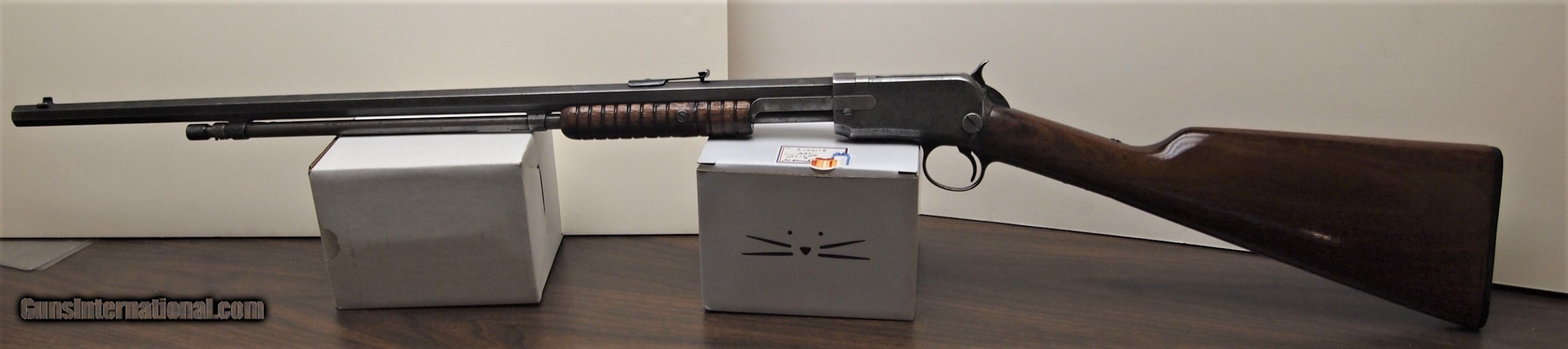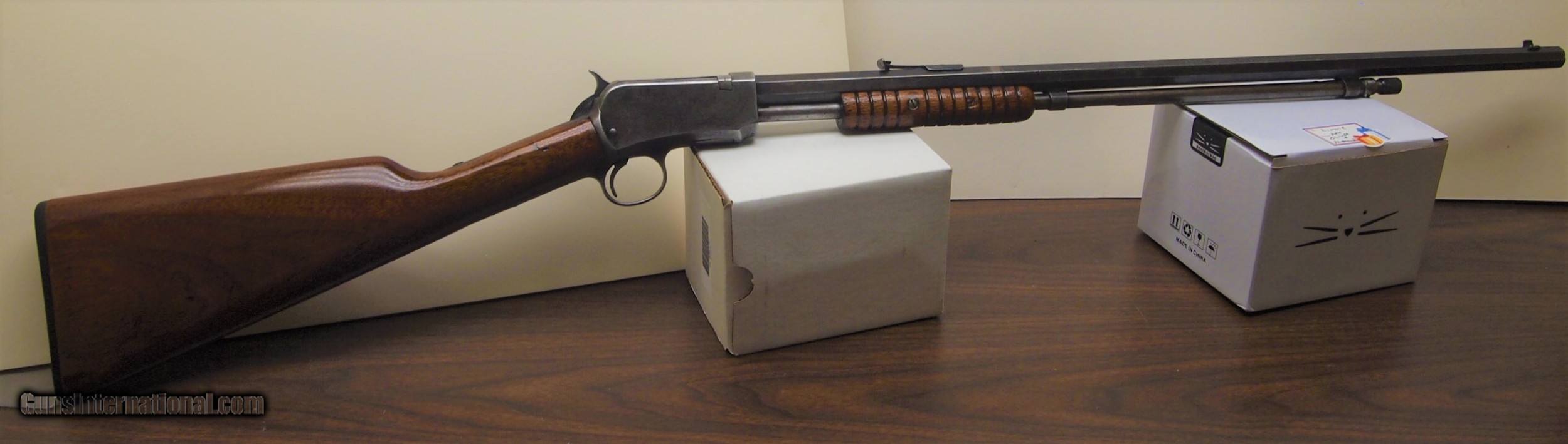 Description: PRICE REEDUCED ! $585.00 Winchester 1890 22 LONG made 1912 Third Model VERY RARE Original 1890 Shot Gun Stock & Butt Plate APROX. 18 WERE MADE Description: My SALE PRICE $585.00 OR best reasonable offer ! This is a rare andoriginal 1890 Shotgun Stock (not a Model 1906 or 62 re fitted stock) see my scans. The 1806 as is a model 62 butt plate is different in size and is NOT stamped Winchester Repeating Arms in the fashion of the 1890. The metal condition is aboutaverage for a 1890 no real scratches or dents . However the finish dose have some typical handling marks and has turned a very nice patina.The wood is in fine condition with no cracks on the stock or the "corn cob". I have recently refinished both (see my scans). If your shooter your going to love this rifle the bore is near mint as are the harmonics ! The action is also very nice and tight also functions as designed with a smooth trigger pull that breaks like carrot. This fine rifle is a Curio & Relic you will need a FFL. Buyer pays actual S&H fees; as for insurance I will insure the rifle for shipment. NO OVER SEA'S SALES ! LOWER 48 States only. Please look over my images of the rifle before you buy. Any questions please E mail me before you make your purchase. sale price $585.00 OR BEST REASONALBE OFFER. Thanks for stopping by don't pass this one up a nice shooter for sure . Price: $585.00 SOLD Curio/Relic: Yes Manufacturer: WINCHESTER Model: 1890 Barrel Length: 24 IN. Condition: very good Metal Condition: Good Wood Condition: EX+ Bore Condition: EX + Barrel Type: Oct. Action: pump Triggers: 1 Stock: WOOD |