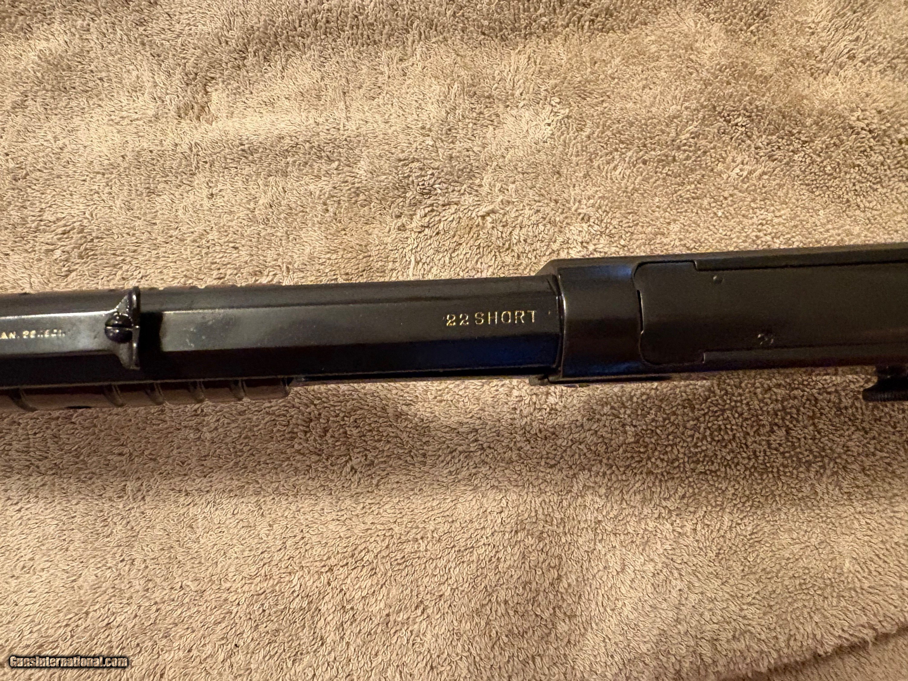 Description: Blue receiver 24” octagon barrel Visible hammer Made from 1890-1937 Walnut stock and forearm This rifle has a very high quality restoration. 100% blue book value $3,600. After 30 years of collecting firearms I can assure you, you will have a one of a kind rifle. None of these are average in any way. "The 22 Man" (903) 967-2287-CALLS ONLY Rifle Caliber: .22 Short Price: $1,500.00 Shipping: $59.99 Buy Now Contact Seller |
