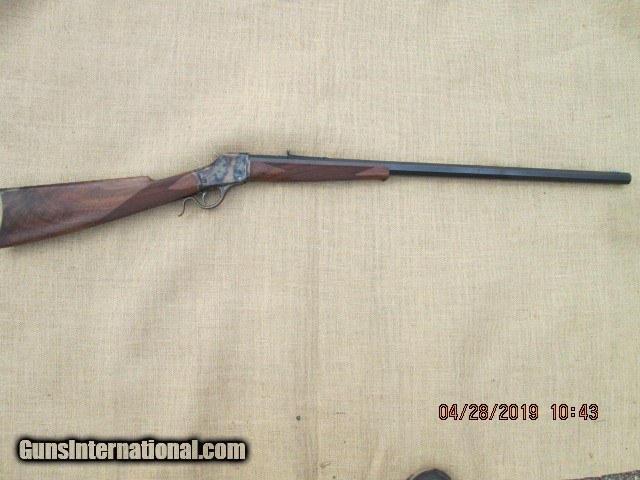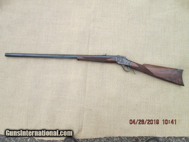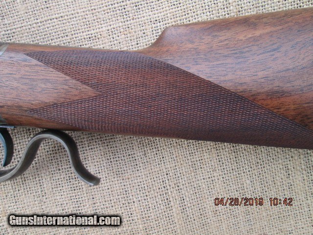 Description: Custom Winchester High Wall built on an antique action in 2001. 28" Barrel is a #3 weight by Badger. Case hardening by Don Menck. Checkering was done by Don Kline. Fairly fancy piece of American Walnut, 2 minor stock dings on the right side near butt. Used very little so condition is near perfect. Original Winchester sights. Shipping via FEDEX ground SOLD Antique: Yes |