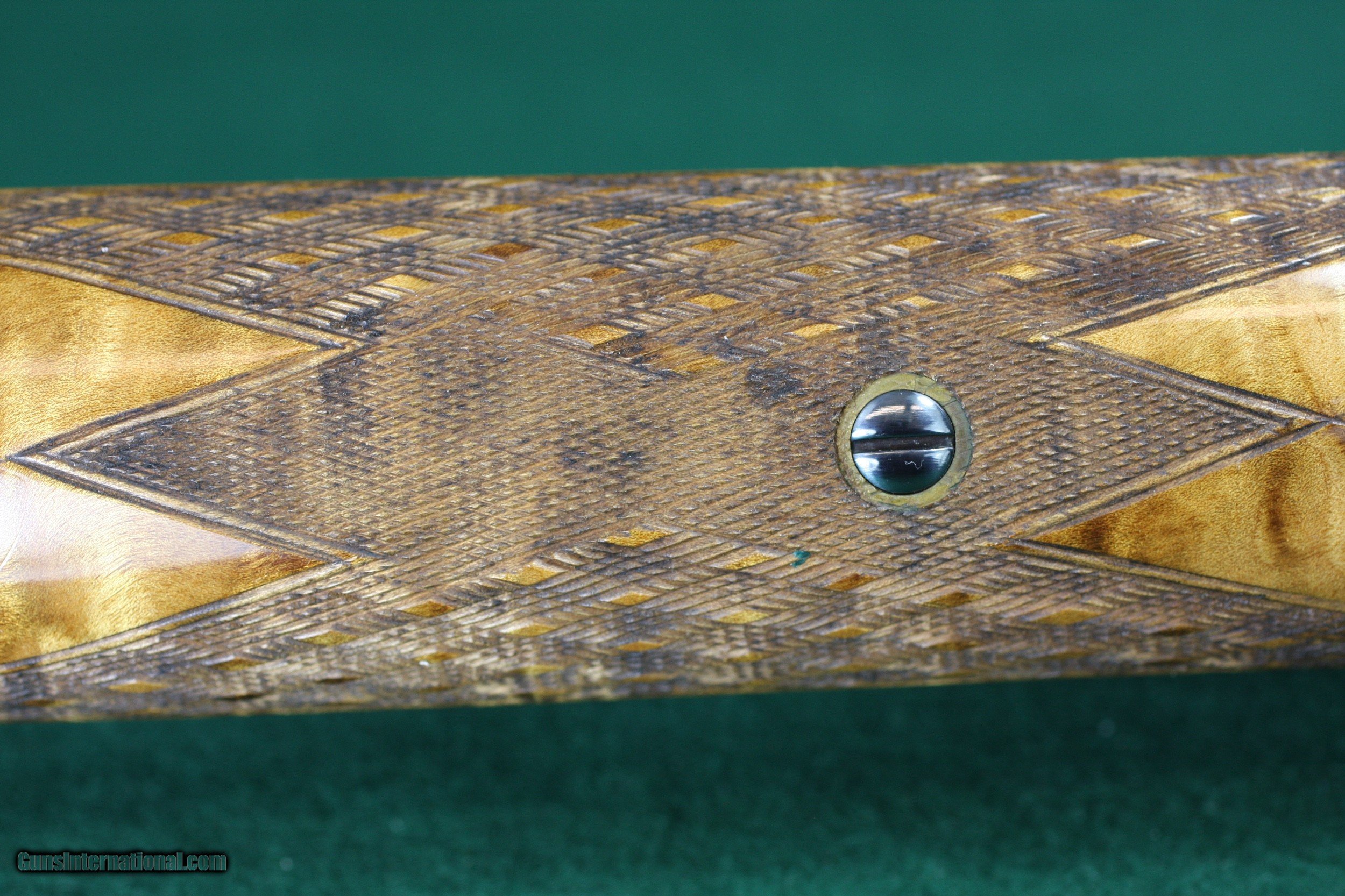 Description: ***********SALE PENDING*******Here’s a rare classic example of American Gunsmithing at its finest. This R-2 caliber rifle exhibits top level artistry and craftsmanship in stock making, metal work and engraving. The pictures exceed any verbal description I could provide. You won’t see many like this…Don’t let it pass you by! See the pictures for features and condition. Happy to talk, text or email any time. Let me know if you have any questions. Thanks for looking! 2333666 RREE 10G If your preference is Walnut & Blue, check out my other listings for quality Traditional and Custom Firearms. SOLD Curio/Relic: Yes Antique: Yes Manufacturer: WINCHESTER/C.C. JOHNSON Model: 1885/CUSTOM Serial Number: 67255 Barrel Length: 24 Condition: MINT Metal Condition: MINT Wood Condition: MINT Bore Condition: EXCELLENT - SHARP RIFLING Action: FALLing Block Single Shot Stock: CUSTOM MAPLE Fore End: ROSEWOOD CAP Butt Pad: WINCHESTER LOP: 14 Finish: Glossy Wood/Deep Blue Weight: 9 LBS. 4 OZ. Sights: LYMAN ALL AMERICAN 6X Manufacture Date: 1893 Engraving: ENGRAVED W/GOLD ENLAY |
