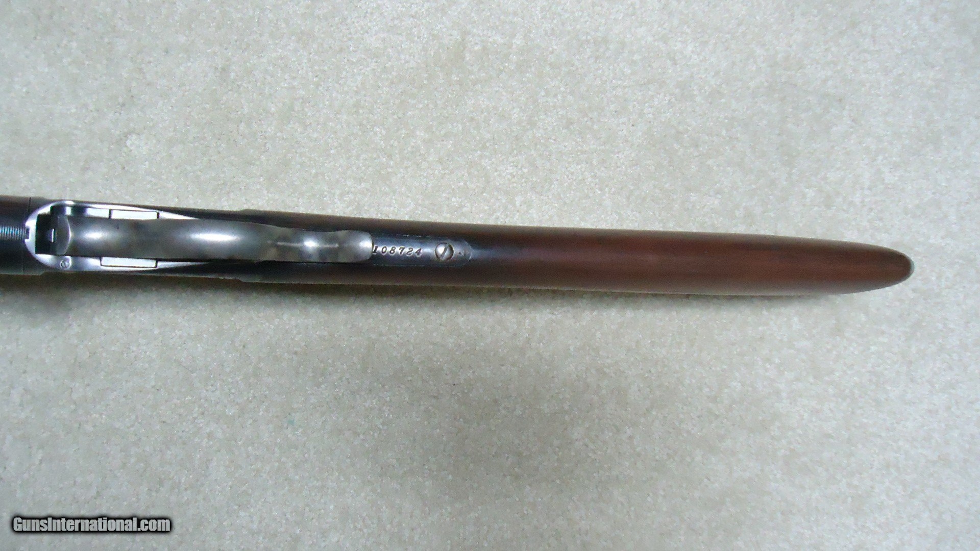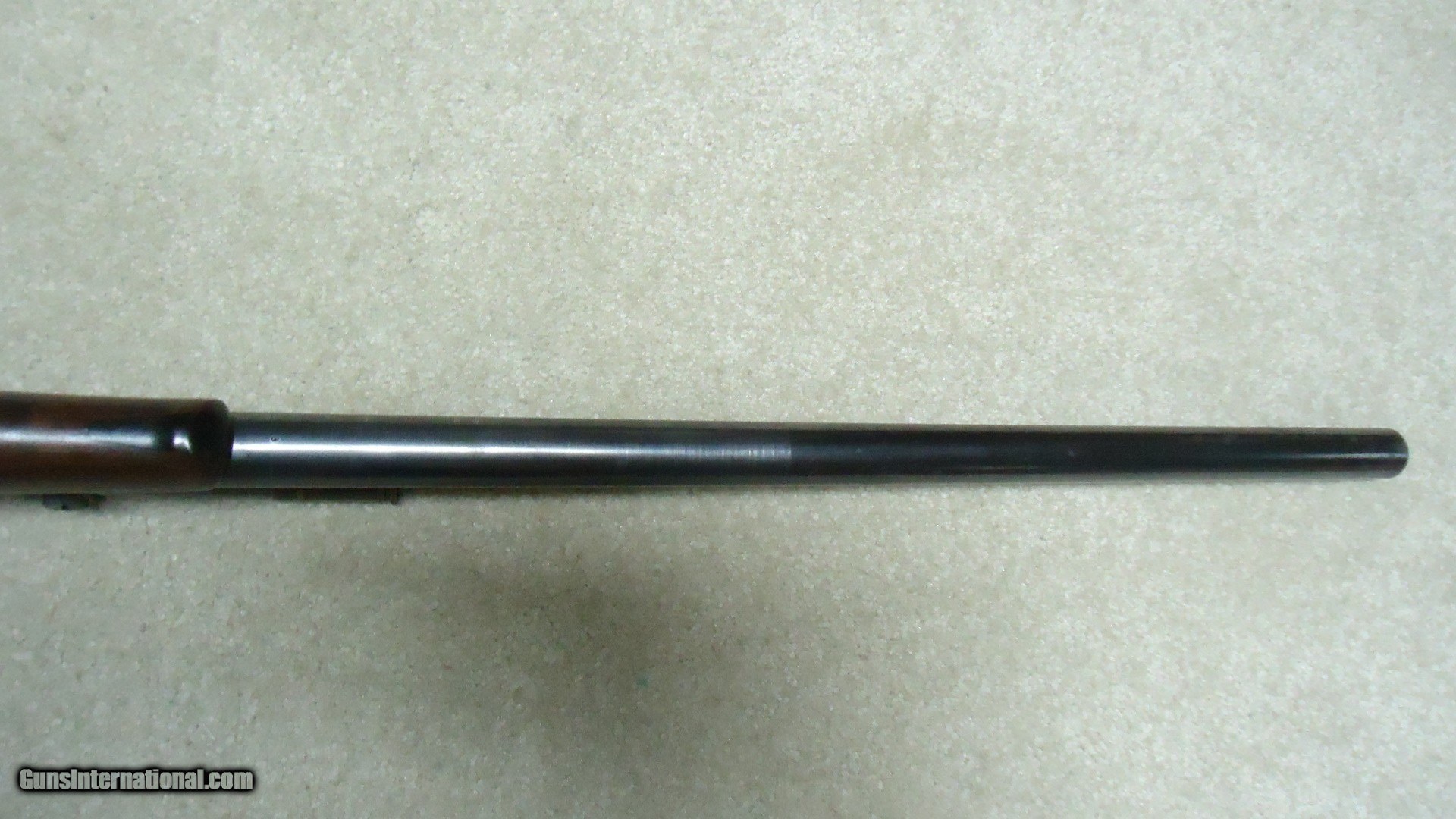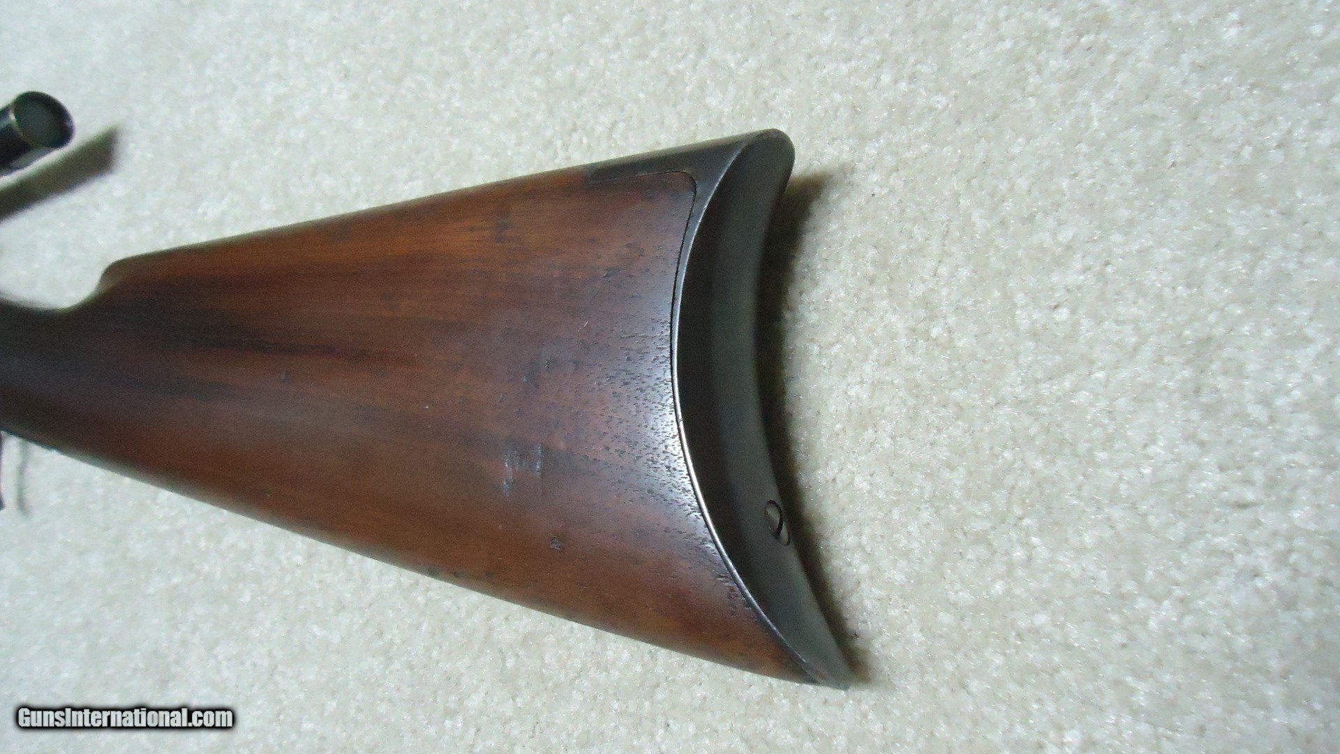 Description: VERY UNUSUAL 1885 TAKEDOWN HIGHWALL RIFLE IN .30-40 KRAG (.30 U.S.) CALIBER, CODY CALL-IN SHEET, #108XXX, MADE 1909. This one is also fitted with a period 18" black enameled brass scope. the scope appears unmarked except for "50 ft" and "200 YDS and Over" "X-8" stampings behind the front adjustable lens. It has a post reticle and has fair clarity- needs a good cleaning. The Cody info. lists this one as having a No.3 weight 30" round barrel, takedown and plain trigger and 30 Gov't caliber. It further states that the serial number was applied October 1, 1909. This rifle was received in the warehouse June 6, 1910 and not shipped until January 27, 1912! It has a fully functioning single set trigger that may have been factory fitted and just not mentioned in the records. It has a blade front sight and a filler in the rear sight dovetail. Stock and forend are excellent and show light handling only. The forend has the correct ebony wedge inlay in the top. Fine barrel blue shows some light scuffs and has sharp makings. The receive similarly show fine blue with light wear/scuffs. Still some case color on the upper portion of the lever, tight action and excellent bore. A really interesting and nice condition smokeless era Takedown Highwall! SOLD Curio/Relic: Yes Rifle Caliber: .30-40 Krag Manufacturer: Winchester Model: 1885 HIGHWALL T/D Serial Number: 108XXX Barrel Length: 30 Condition: FINE+ Bore Condition: EXCELLENT |