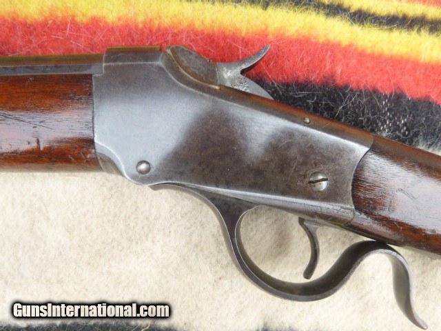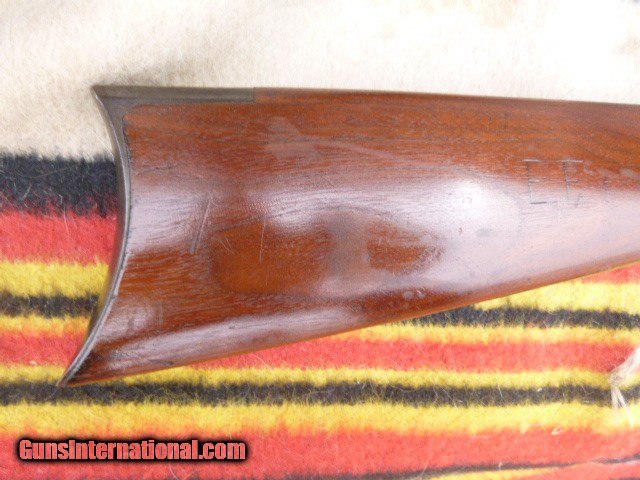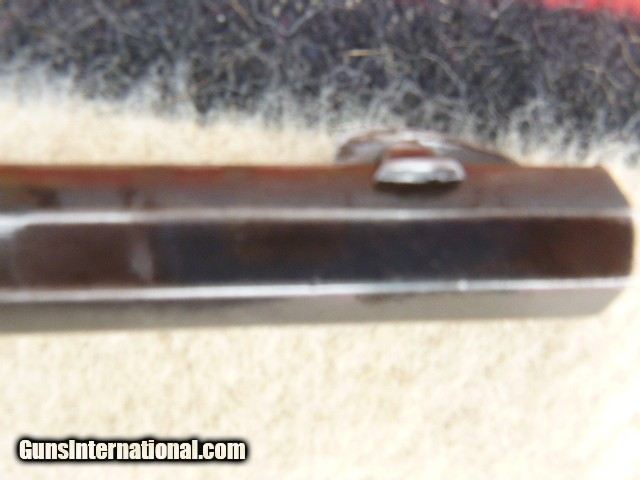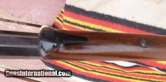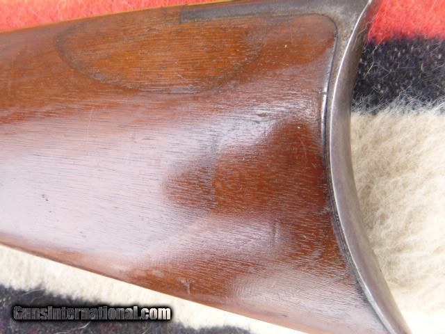 Description: Here is a nice Winchester single shot, all original, from back in the golden days of Winchester. This rifle functions as it should with a good bore. Wood is in very nice condition though a long ago owner was so proud of his rifle he put his intials in the butt-stock. It isn't all that noticeable but it's there. Fore-end has the traditional ebony insert. Metal is smooth, no rust or pitting. Lots of blue but now turned dark after 130 years. Rifle was made in 1891. Should you choose to shoot this rifle stick to lead bullets as the steel back then wasn't made for shooting copper jackets and have a gunsmith put his blessing on it as well. Cowboy loads would be the thing and this is also an easy caliber to reload. As this is an antique, it ships to your door in most states for $60 via priority mail including insurance. SOLD Rifle Caliber: .32-20 Winchester Manufacturer: Winchester Repeating Arms Model: 1885 Serial Number: 55xxx Barrel Length: 26 |