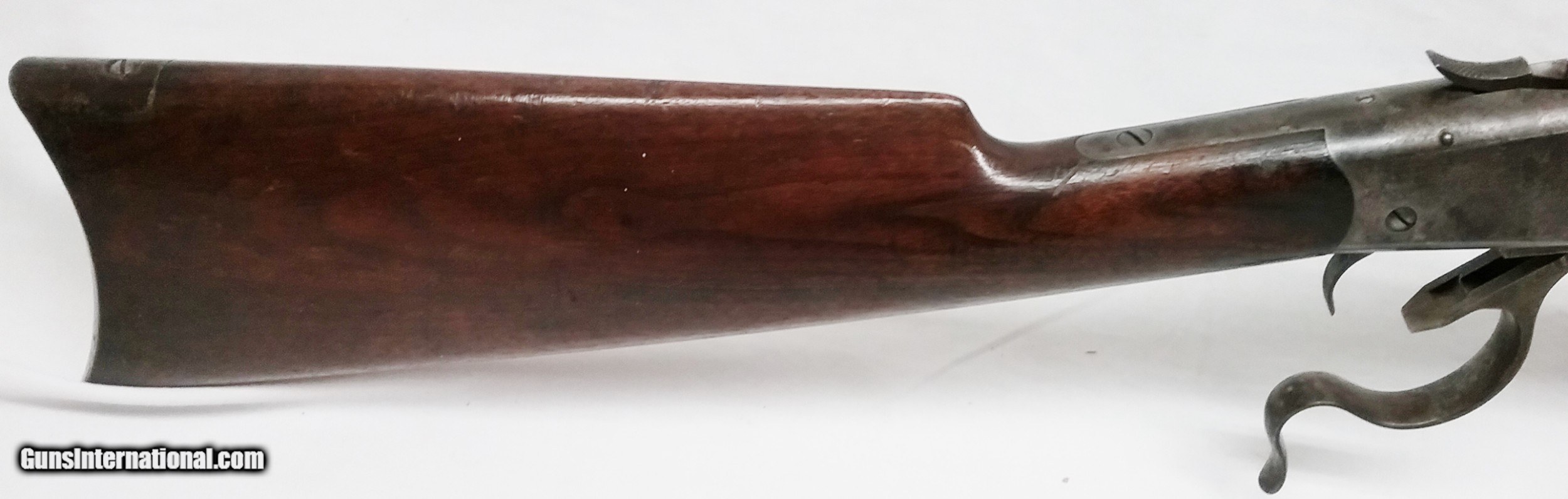 Description: C265 Winchester – Low Wall - .32 Long - Stk #C265 This Winchester 1885 low wall manufactured in 1893 is chambered in the .32 long. This rifle features a 26” original finished browned tapered 7/8” to 3/4” octagon barrel with Mfg Information on the top flat. It is mounted with a fixed front blade sight and an adjustable rear sight. The rifling in the barrel is worn with sporadic pitting both inside and out. The Walnut buttstock with steel butt plate and forend are in good condition, with usage dents and handling marks. The action has finish wear and some light sporadic pitting but is tight and functions perfectly. The length of pull is 13-1/4”, overall length is 41-1/2 inches, and weight is 6.2 lbs. Our stock number is C265. Will ship to anywhere in the United States, buyer pays freight and insurance. SOLD Curio/Relic: Yes Antique: Yes Rifle Caliber: .32 Manufacturer: Winchester Model: 1885 Bore: Rifled Chambers: 1 Ejectors: Yes Condition: Good Metal Condition: Good Wood Condition: Good Bore Condition: Worn Barrels: One Barrel Type: Tapered Octagon Action: Falling Block Triggers: One Stock: Walnut LOP: 13-1/4 Finish: Browned Weight: 6.2 lbs Sights: Adjustable Manufacture Date: 1893 Item Location: OR - Oregon |