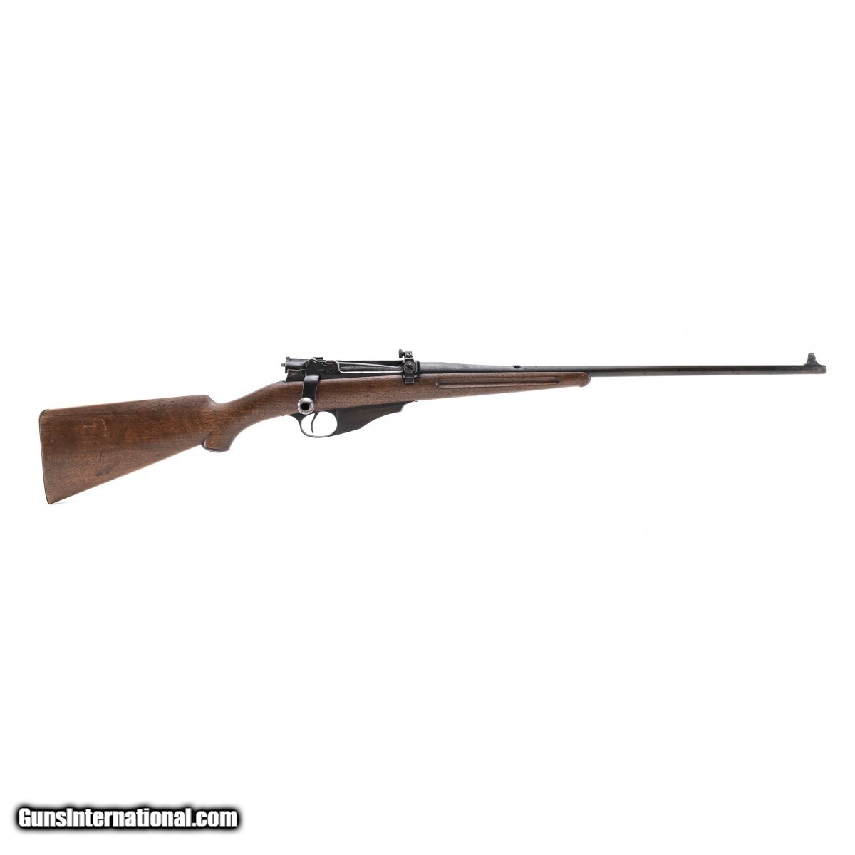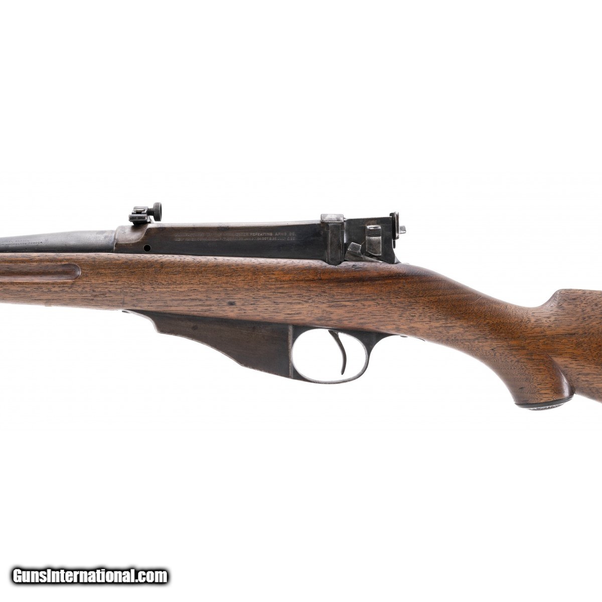 Commercial straight pull rifle. Metal is turning to a gray and brown patina. Bore has strong rifling with frosting. Wood is good with some nicks and dings. Good overall condition.