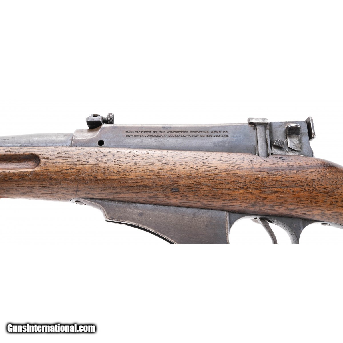Description: " Commercial straight pull rifle. Metal is turning to a gray and brown patina. Bore has strong rifling with frosting. Wood is good with some nicks and dings. Good overall condition. SOLD |