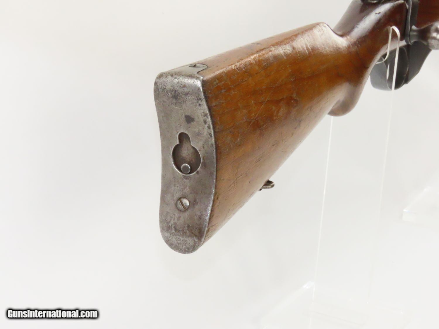 Description: Antique WINCHESTER-LEE Model 1895 STRAIGHT PULL Bolt Action NAVY RIFLE US Military Model 1895 Chambered in .236 USN and Made in 1898 Here we present an antique Winchester-Lee Model 1895 Straight Pull Bolt Action Rifle, manufactured circa 1898 in New Haven, Connecticut. The Lee was the design of James Paris Lee, formerly of Remington. The Lee Rifle competed in the 1894 Navy trials for a rifle for both the Navy and Marine Corps and won, being adopted as the Model 1895. Heretofore, the U.S. military had almost exclusively been using large bore, single-shot rifles with single action hammers, but times were changing. The Army picked the Krag-Jorgensen which proved to be the first successful bolt action, small bore rifle in U.S. military service, so it made sense that the Navy would want something to update from their Remington Rolling Block Rifles. The Winchester-Lee would not see nearly the numbers the Krag did due to manufacturing issues at Winchester. The Navy began additionally purchasing Krags in about 1900. Only about 20,000 were made altogether, with only about 1,700 of those being the Sporting Model. The overall condition is very good. The action is as strong as ever. The bore is in good shape with nice rifling. The stock has been shortened from the full-length musket configuration, likely to lighten the rifle. Own the original! This is a legitimate antique and not a reproduction. Barrel is 27-1/2 inches. Caliber: .236 USN (6mm Lee) Overall condition as seen in photos. Very Fast. Very Safe. FREE SHIPPING WORLDWIDE. Delivered directly to your door by express mail! Guaranteed AUTHENTIC & Includes CERTIFICATE OF AUTHENTICITY. ancestryguns $1350 #20593 SOLD Antique: Yes |