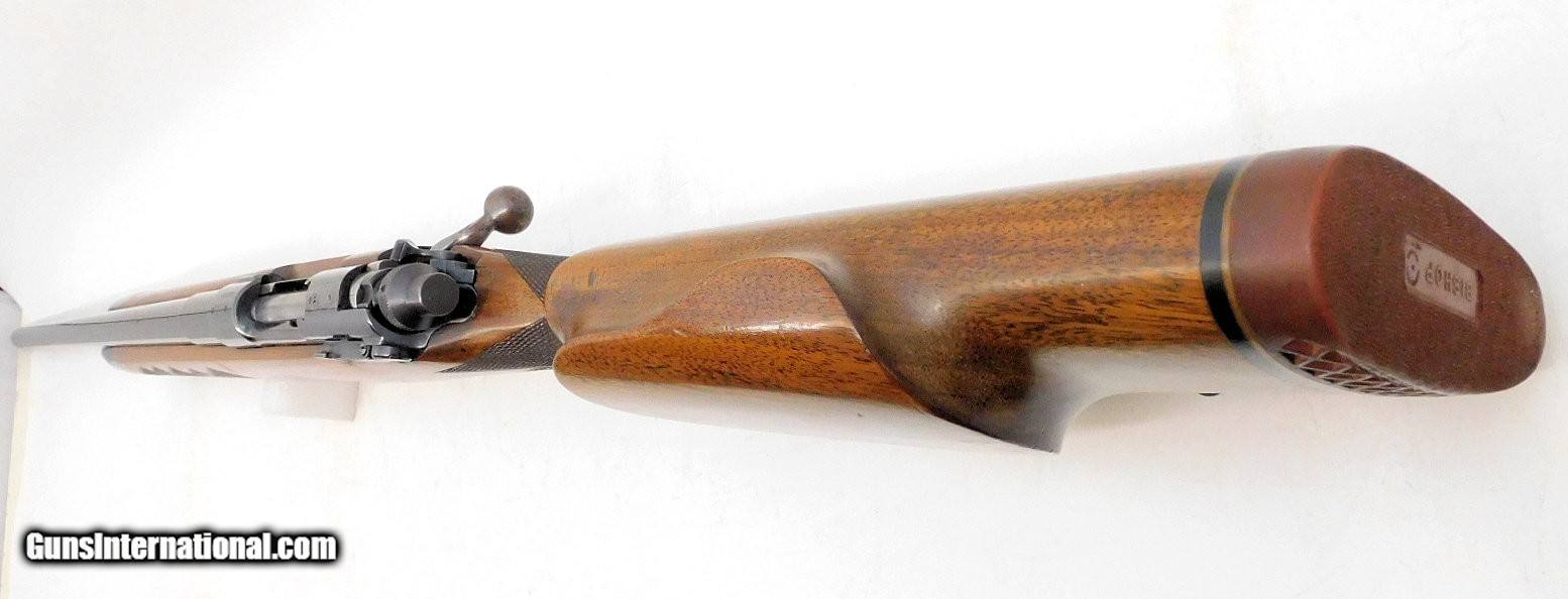 Description: This custom long range target rifle is built in the classic American style that was the staple of Wimbledon long range matches. The step tapered heavy match barrel has very sharp rifling and shows very little wear. Drilled and tapped for Unertl mounts and modern scope mounts. The heavy target walnut stock has a wide fat stable forearm and a thick heavy wrist. The monte carlo cheekpiece is beefy and line up well with an optic. Bishop recoil pad, a forearm cap and ebony forearm tip. This rifle would make an excellent addition for anyone who enjoys classic American target rifles. Add 3% for Credit Card Shipping $60.00 in the 48 contiguous United States SOLD |