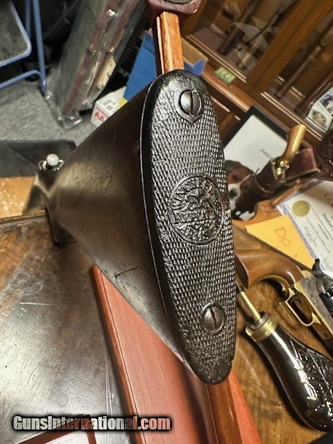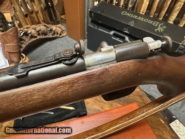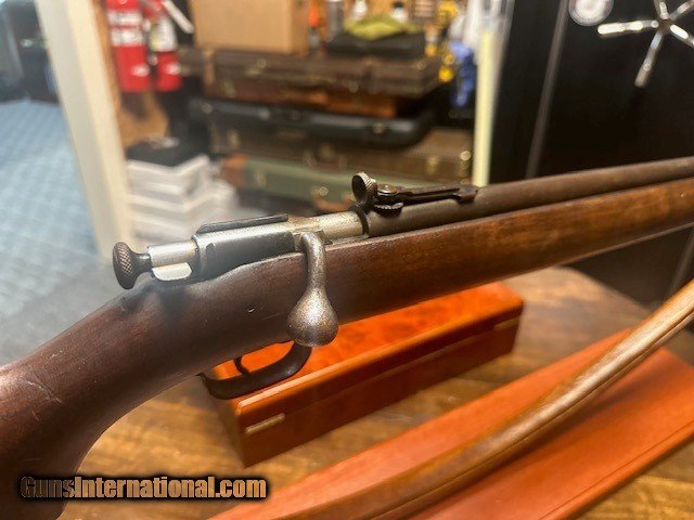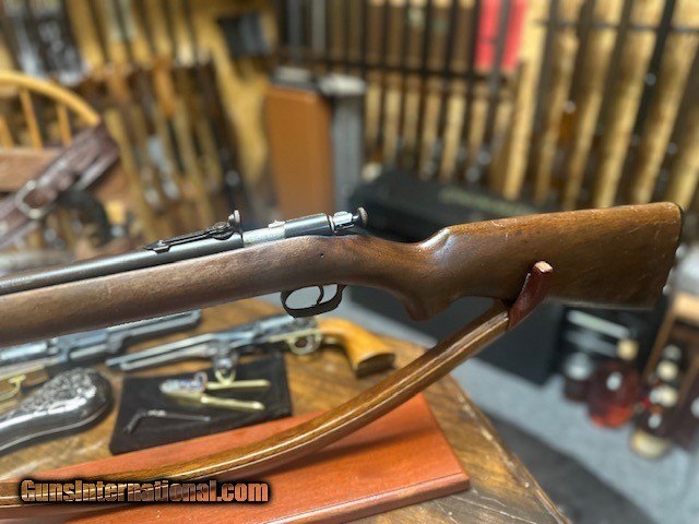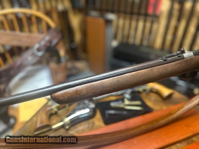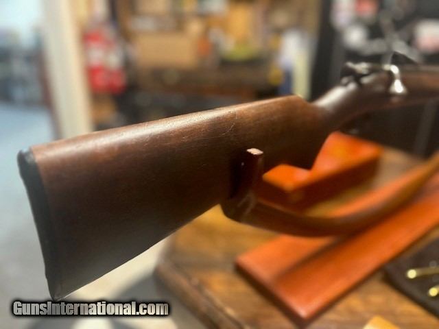 Description: The Winchester Model 67 is a single-shot, bolt-action .22 caliber rimfire rifle manufactured and sold from 1934 to 1963 by Winchester Repeating Arms Company. Based on the gun's characteristics, I believe the rifle is post 1937. The Model 67 was never produced with serial numbers for the American market because they were not required on American firearms prior to the Gun Control Act of 1968. According to The Winchester handbook “In a count of production from 1934 to 1949, only 9721 of these shorter rifles were made, and they sold new for bewteen $6.50 and $7. 50. This Model 67 had a 27-inch barrel with a beaded front sight and an adjustable rear peep sight, both dovetailed into the barrel, drift-adjustable for windage. This particular rifle is stamped on barrel that it is chambered for .22 Short, .22 Long, or .22 Long Rifle cartridges. The rifle features plain uncheckered walnut stock with a pistol grip and a standard Wincheter composition buttplate. The rifle is a takedown model; as the barreled action is removed by turning a screw under the stock using a coin. I cool little rifle for a fair price; $175.00 Reasonable offers considered. SOLD Rifle Caliber: .22 Long Rifle, .22 Short, .22 Long Manufacturer: Winchester Model: 67 Serial Number: none available Barrel Length: 27 Condition: fair Metal Condition: fair Wood Condition: fair Bore Condition: good |