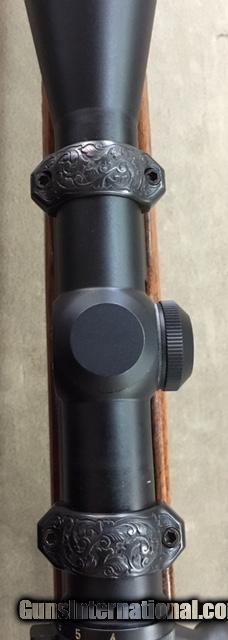 Description: This is one of the most difficult Post 64 Model 70's to find; A heavy barrel Model 70 in .225 Winchester caliber. Rifle is equipped with engraved rings and a Nikon 4-12x Target Scope with adjustable objective. Scope has a very few minor ring marks (not dents). Rifle has most all blue and stock finish. Rifle has a 24 inch barrel that is factory drilled and tapped for both a front ramp sight and a rear sight (sights not included) with a perfect bore and chamber. Rifle has 98% original factory blue and 98% original factory stock finish (few very minor handling marks). Excellent plus, plus, plus, overall condition. SOLD |