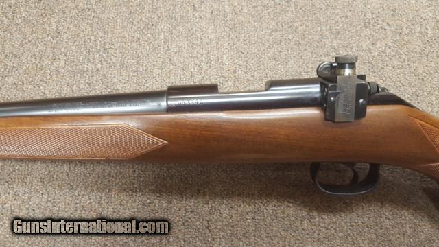Description: Winchester Model 52-C Sporter, MFG 1956 with adjustable Micro Motion trigger ( 2 screws in trigger guard). peep sight, 24" lightweight barrel, sporting type select walnut stock with cheekpiece, hard rubber pistol grip cap, black plastic tipped forend, 5 shot magazine. This gun looks like new. C/C add 3% S&H $30.00 SOLD Manufacturer: winchester Model: 52-C Sporter Serial Number: 95384C Caliber Info: 22LR Condition: LIKE NEW Barrels: 24 |
