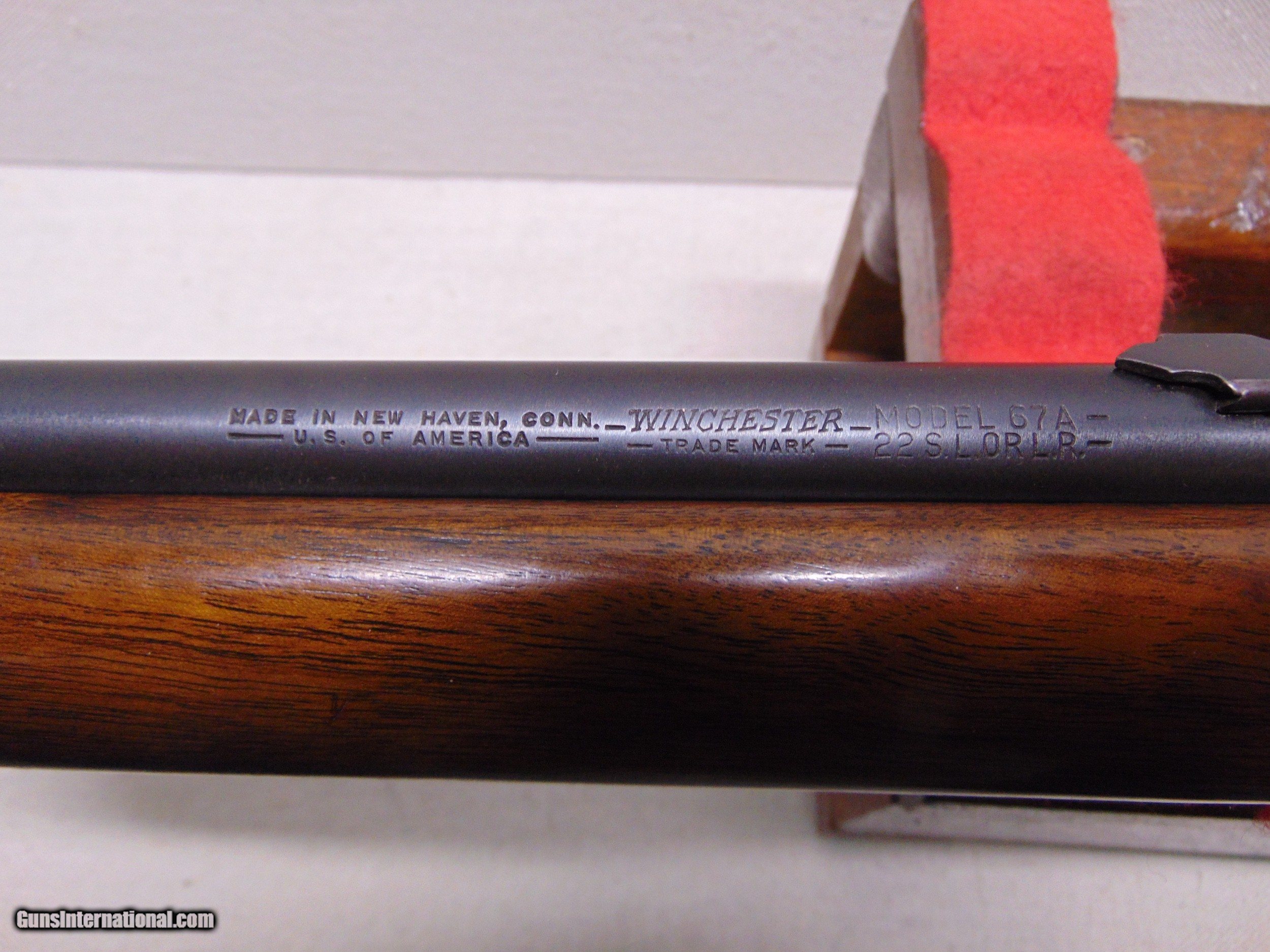 Description: !!! SOLD !!! Winchester 67-A Boys Rifle,22LR,20" Barrel,Chrome Bolt, Original Barrel Sights and Butt Plate, Excellent Condition With Excellent Bore!! Store Hours Thurs- Fri-10AM-8PM Sat-9AM-12PM,All other times Please Leave a Message, Thank You!! Sales Lower 48 States Only No California Sales 6% Sales tax Applicable to Pa. Residents Shipping $35.00 SOLD Rifle Caliber: .22 Long Rifle Manufacturer: Winchester Model: 67-A Serial Number: NSN Barrel Length: 20 |
