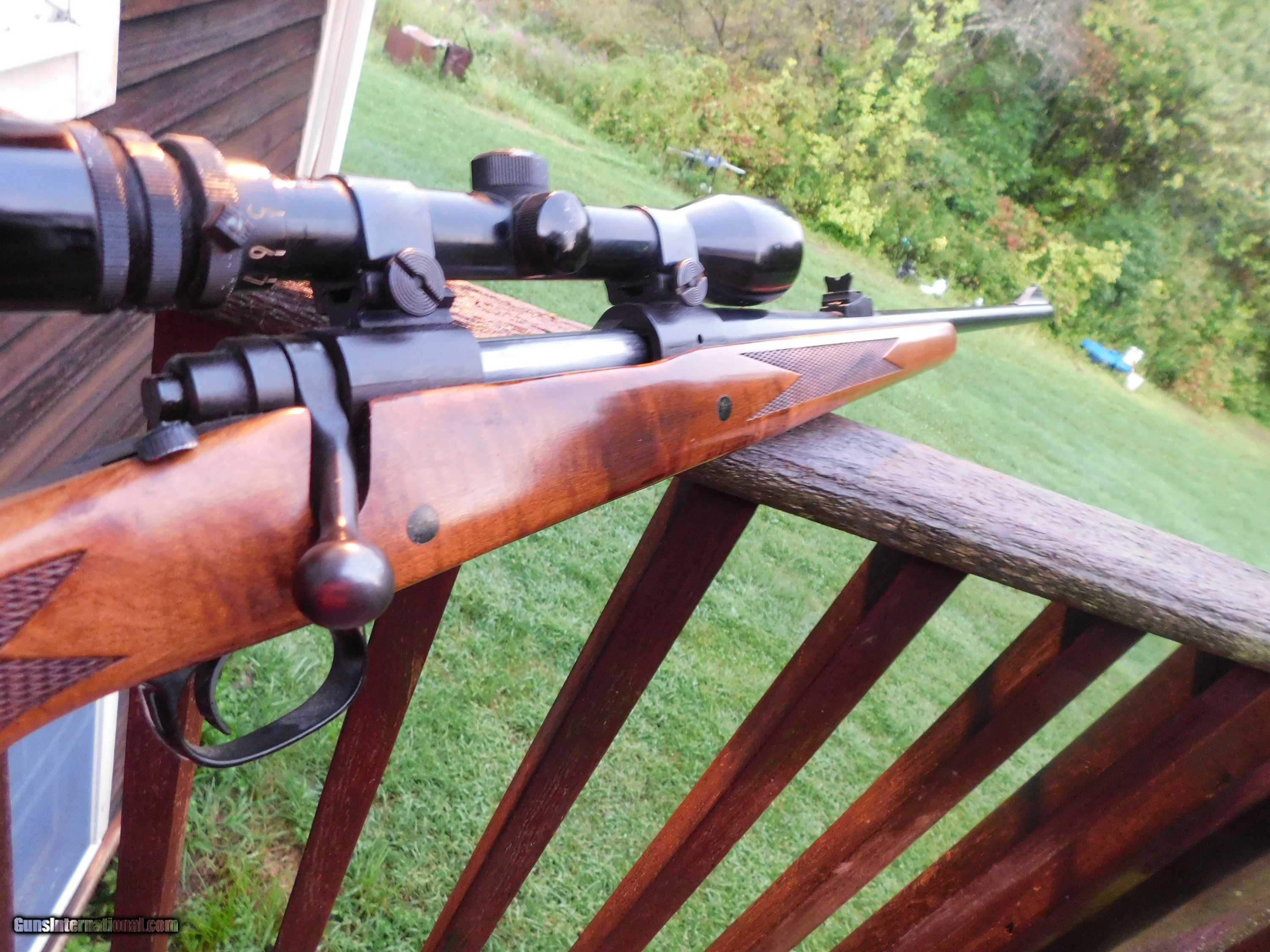 Description: SALE PENDING WALT K 8/22/24 Based on a post 64 Model 70 action with some differences and unlike almost all M 70s these have a blind mag. While this was no doubt done as a cost savings target shooters belive the ridgidity of a stock without a hinged floor plate is by nature likelty to be more accurate. Some have been turned into target rifles. This one is unmodied and just as it left the old Winchester factory 50 mins from our location in the 60's or 70s. The stock has some nice figure and chambered in mild recoiling 243 might make a inexpensive substantial US Made Model 70 type. Comes with an inexpensive Bushnell variable, clear and bright and ready for fall. Shipping is $ 65.00 IF IT DOES NOT SAY ."SALE PENDING, UNDER DEPOSIT or ON HOLD"...IT IS AVAILABLE. WE DO NOT REPLY TO INQUIRIES THAT SAY "INTERESTED IN THIS GUN" OR "IS IT AVAILABLE" IF YOU WOULD LIKE TO BUY THIS OR ANY OF OUR GUNS WE SUGGEST YOU PHONE US; WE ARE OFTEN AVAIALABLE LONG HOURS. IF YOU ARE INTERSTED IN A GUN THAT IS UNDER DEPOSIT AND WOULD LIKE TO BE NOTIFIED IF A SIMILAR GUN COMES IN DROP US A LINE AND WE WILL MAKE EFFORTS TO CONTACT YOU WHEN ONE DOES COME IN. WE HAVE OVER 2000 SALES ON ALL SITES WITH AN A+ RATING ON ALL WE ALSO KEEP AN INVENTORY OF OLDER PERIOD CORRECT SCOPES; CALL WITH NEEDS WE MOSTLY PICK VERY CLEAN AND LIGHLTY USED GUNS. WE ARE HAPPY TO TAKE CONSIGNMENT GUNS AND COLLECTIONS OR WILL BUY YOURS OUTRIGHT. WE SOMETIMES ARE EMPLOYED FOR ESTATE PURPOSES AND VALUATIONS. AT THIS TIME WE ARE ONLY ACCEPTING US POSTAL MONEY ORDERS OR BANK CHECKS FOR PAYMENT IT IS THE BUYERS RESPONSIBILITY TO GET US A COPY OF YOUR RECEIVING FFL'S LIC AND A COPY OF YOUR PHOTO ID BEFORE THE GUN SHIPS YOU MUST CALL OR CONTACT YOUR FFL.WE DO NOT CALL FOR YOU UNLESS THEY RQUIRE IT. LAYAWAY PURCHASES NOT COMPLETED ON ANY RETURNED ITEM UNLESS NOT AS DESCRIBED OR DAMAGED ARE SUBJECT TO A 10% RELISTING/RESTOCKING FEE AND MUST BE RETURNED WITH NO NEW MARKS OR SCRATCHES, SENT BACK INSURED, PRIORITY SIGNATURE REQUIRED. ALL INFORMATION CONTAINED HEREIN IS BELIEVED TO BE ACCURATE BUT IS NOT GUARANTEED. WITH ANY OLDER OR USED GUN IT SHOULD BE INSPECTED BY A GUNSMITH PRIOR TO SHOOTING SOLD |