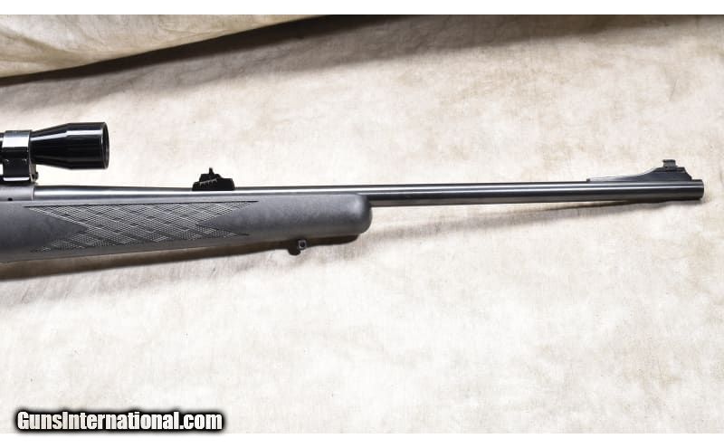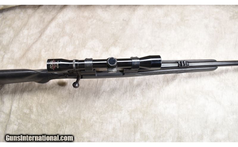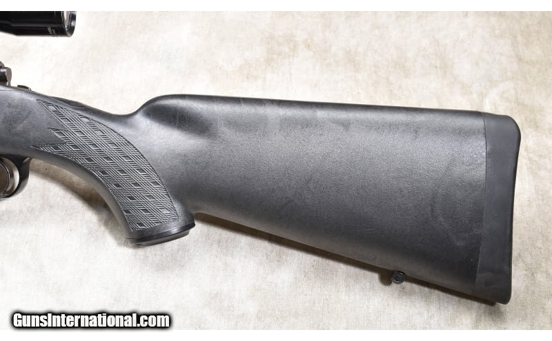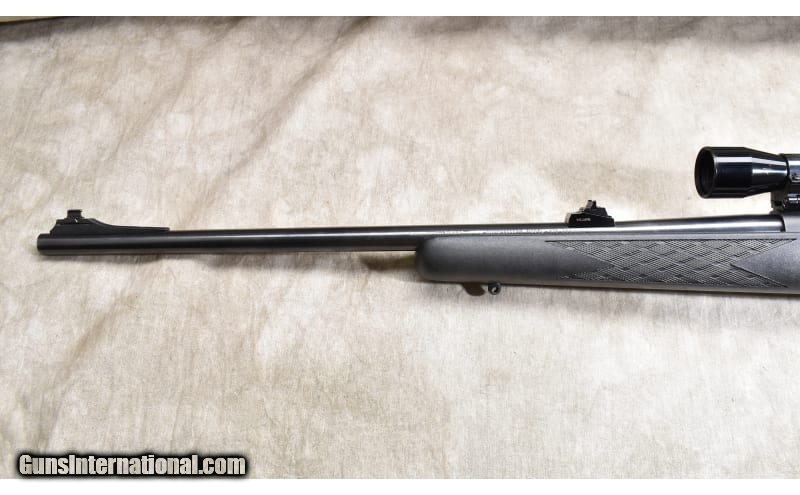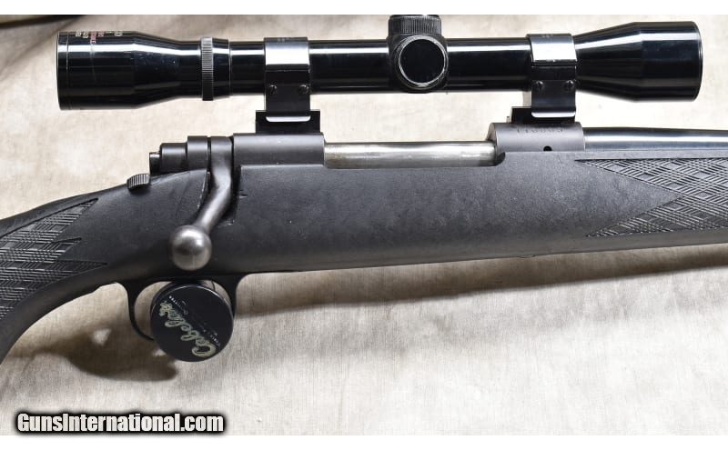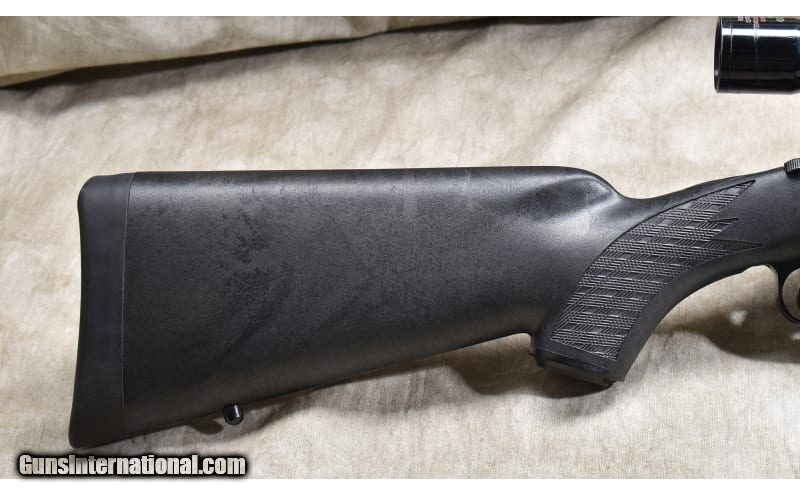 Description: The Model 670 is the Winchester 'economy" version of the Model70. It features a black synthetic stock with skip line checkering, an internal blind magazine, "iron" sights and scope. This is a gun designed for hunters and should have a lot of shooting left in it. .308 Winchester SOLD Chambers: 4 rounds Metal Condition: Very good. Wood Condition: Very good. Bore Condition: Shiny and bright with sharp rifling. Barrels: 22 inch Triggers: Factory trigger Stock Dimensions: 13-1/4 inch LOP. Butt Pad: Soft and thick rubber pad. Weight: 8 lb - 8 oz. with scope Sights: "Bead and notch open sights, scope ready and outfitted with a Tasco fixed 4 power scope. Item Location: Rogers |