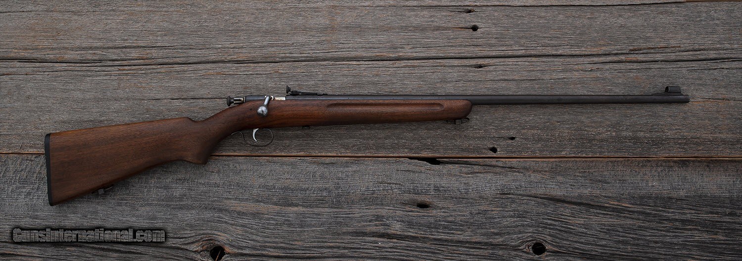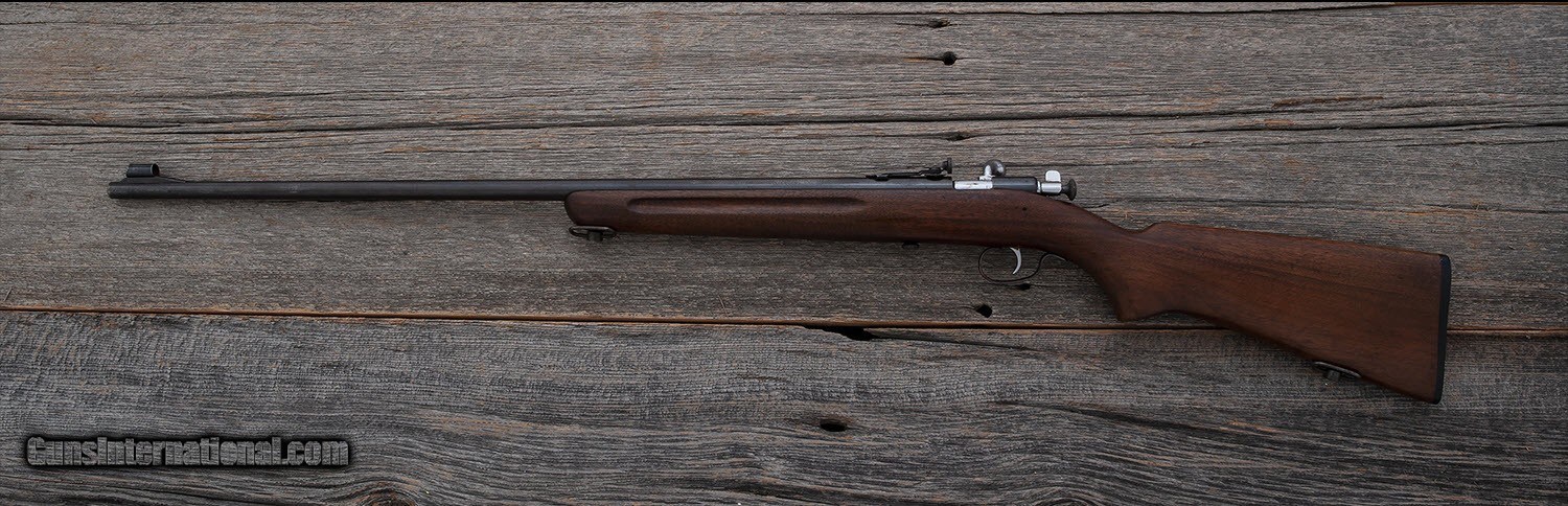 Description: Winchester - 68 - .22 Cal caliber - Item Number: WINNSN44 Rifle type: Bolt Action Action: Bolt Action Barrel length: 22 Sights: Peep Rear / HRP Front Weight: 5 lbs, oz Overall condition: Good Stock condition: Good Metal condition: Good Stock: Original finish Metal: Original finish Type of Case: none Finish: Blue Type of Butt: Factory Pad thickness: 0.25 " Manufactured in: USA Lop: 13 3/8 " Hand: Right Comments : Rifle is in mechanically good condition, some rust spots on the barrel. R-108 SOLD |