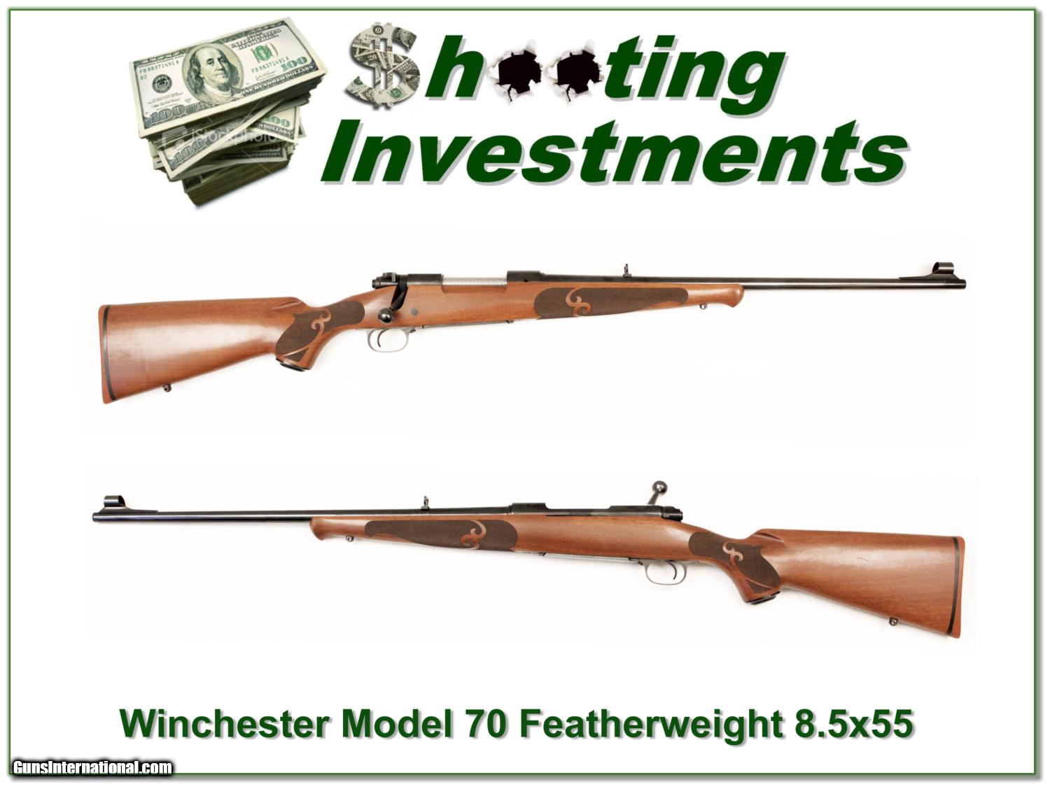 Description: Collectors, this is a hard to find Model 70 Featherweight in 6.5x55mm. This New Haven gun is in excellent condition with only a few minor marks on the wood. It will make a find addition to your collection. I am selling this one on consignment and as such lay-a-way can’t be used. It does of course have the standard 3 day inspection. Shipping and insurance is $35 or $15 more if you want it shipped in a new Plano hard case. Please email me with any questions or larger pictures. (I now consign quality firearms only 10%! Let me know if you have any you would like to sell!) [15-1419] Payment: Payment is by Money Order, Cashiers Check or Personal Check. I can now also accept MasterCard and Visa with a 3% convenience fee. PayPal can be used for some items but never firearms. Please let us know if you would like to pay via PayPal. Shipping: The shipping charge will be listed in each description. It is $35 for most guns. Some heavy guns or those insured for over $2000 may be higher. Shipments to Alaska and Hawaii are higher because air shipment is required. Most firearms are shipped within 5 days of receipt of payment. We prefer shipping at the beginning of the week to avoid firearms in transit over weekends. We package all shipments carefully and insure them for the full purchase price, rounded up to the next $100. In the unlikely event that damage occurs, it is important that you save all packaging material for the claims process. Optics are shipped Priority Mail and most other non-firearm shipments are shipped First Class. Returns: Our return policy is simple. If for any reason you are not pleased with your purchase, you may return your item for a refund. The only exception is ammunition, it cannot be returned. It is important to us that you are happy. Guns cannot be fired or dissembled before returning them and must be returned in the same condition as received. Notification of a return must occur with-in 3 days of receipt at your dealer. Shipping, convenience and dealer fees are not refundable and are the responsibility of the buyer. Lay-a-way: If needed, we offer a 60 day lay-a-way option on most firearms. It is 1/3 now, 1/3 in 30 days and 1/3 in 60 days. Lay-a-way firearm sales are final. Consigning your firearms with Shooting Investments: We will help you get top dollar for your firearms. While most local guns shops charge 20% or more, our fee is only 10% with a minimum of $50. At your local gun shop it might take months to sell. Selling on-line provides instant access to thousands of interested buyers. You won’t find any other on-line dealer willing to sell your firearms for only 10% or listing every gun on 4 separate s. Selling through an House typically costs the seller 15% and the buyer an addition 15% (so 30%) and you have to wait several months to sell and longer to receive funds. If properly priced, we will sell your firearms in a week or two. Send us an email or give us a call and we’ll explain how easy it is for you to get top dollar. Trading: We collect guns and usually just trade for guns we want to add to our collections. We often sell guns for others wanting to purchase one of ours. We find this the most fair to both of us. Our Commission is only 10% and we hold the gun you want until yours sells. Please contact us if you want to sell one of yours to buy one of ours. Help for California Buyers: We are happy to ship to California. It is the buyer’s responsibility to make sure any item you buy is legal in your state. We are also happy to help with your purchase of a firearm from someone other than us. If you see a gun you would like to buy but the seller can’t or won’t ship to California we can help. You buy the gun and have it shipped to us. We’ll then ship it to your California dealer. The cost for this service is only $35 + shipping. Let me know if we can help! SOLD |