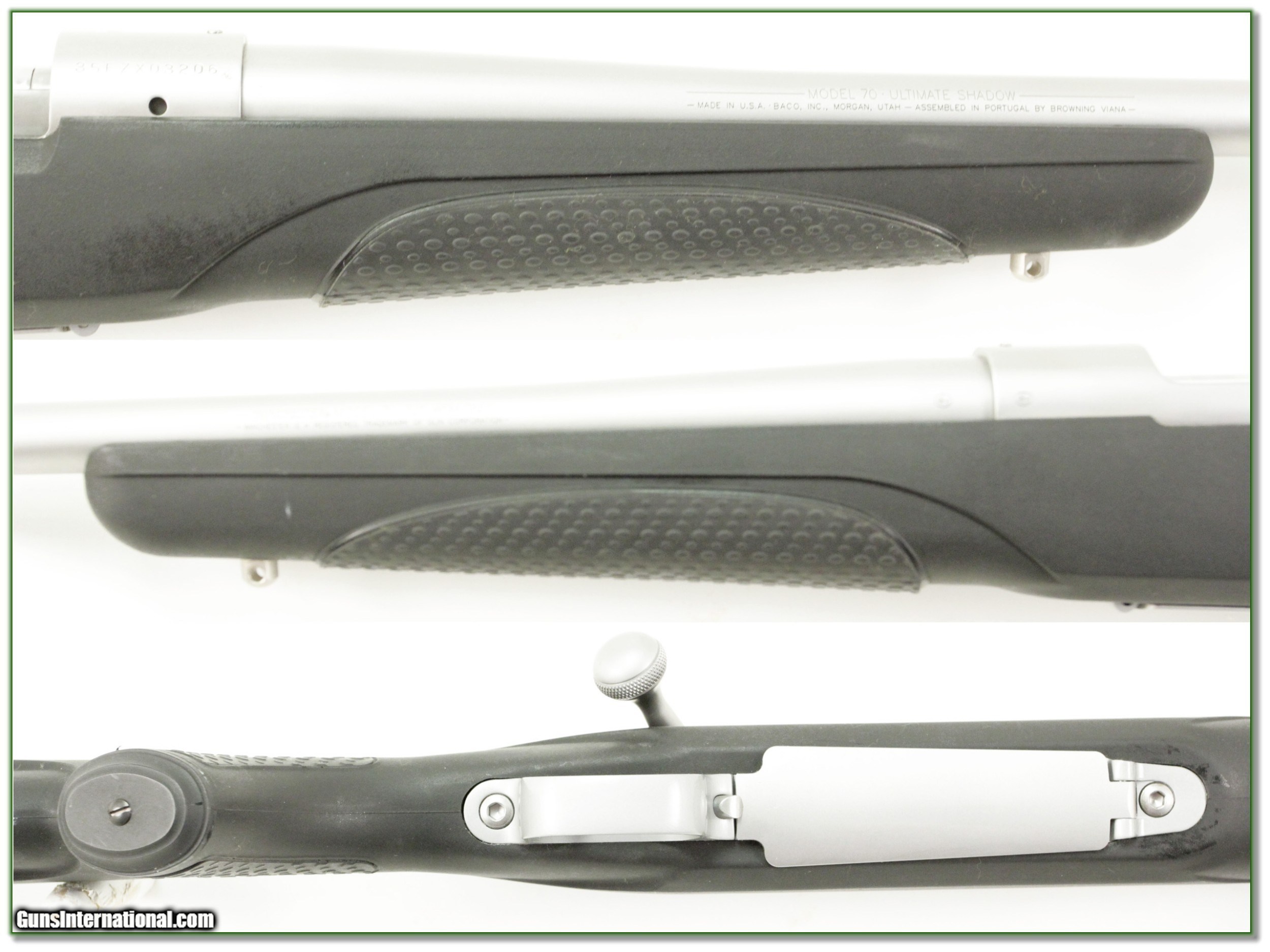 Description: This is an excellent near new condition Winchester Model 70 Stainless Ultimate Shadow in the hard to find and hard-hitting 325 WSM with 24in barrel. It will make great all-weather big-game hunting gun! I am selling this one on consignment and as such lay-a-way can’t be used. It does of course have the standard 3-day inspection. Shipping and insurance is $39. Please email me with any questions or larger pictures. (Consign your quality firearms with Shooting Investments for only 10%! Let me know if you have any you would like to sell!) 18-0286 Payment: Payment is by Money Order, Cashiers Check or Personal Check. I can now also accept MasterCard and Visa with a 3% convenience fee. PayPal can be used for some items but never firearms. Please let us know if you would like to pay via PayPal. Shipping: The shipping charge will be listed in each description. It is $39 for most long guns and $29 for most handguns. Some heavy guns or those insured for over $2000 will be higher. Shipments to Alaska and Hawaii are higher because air shipment is required. Most firearms are shipped on Tuesday and Thursday and usually in 5 days of receipt of payment. We package all shipments carefully and insure them. For long guns you can purchase a new Plano case for $19. They now cost us $22 when buying 100 at a time. Optics are shipped Priority Mail and most other non-firearm shipments are shipped First Class. Returns: Our return policy is simple. If for any reason you are not pleased with your purchase, you may return your item for a full refund of purchase price. Ammunition cannot be returned. It is important to us that you are happy. Guns cannot be fired or dissembled before returning them and they must be returned in the same condition as received. Notification of a return must occur with-in 3 days of receipt at your dealer. Shipping, convenience and dealer fees are not refundable and are the responsibility of the buyer. Lay-a-way: If needed, we offer a 60 day lay-a-way option on most firearms. It is 1/3 now, 1/3 in 30 days and 1/3 in 60 days. Lay-a-way firearm sales are final and if not completed the first payment cannot be returned. Consigning your firearms with Shooting Investments: We will help you get top dollar for your firearms. While most local guns shops charge 20% or more, our fee is only 12% with a minimum of $75. At your local gun shop it might take months to sell. Selling on-line provides instant access to thousands of interested buyers. You won’t find any other on-line dealer willing to sell your firearms for only 12% or listing every gun on 3 separate s. Selling through an House typically costs the seller 15% and the buyer an addition 15% (so 30%) and you have to wait several months to sell and longer to receive funds. If properly priced, we will sell your firearms in a few weeks. Send us an email or give us a call and we’ll explain how easy it is for you to get top dollar. Trading: Trading for use is really just buying your gun to re-sell. If you have a gun you want to trade, please email a picture and we will let you know what we can give or it. You will always get more if we sell it for you on consignment. Help for California Buyers: We are happy to ship to California. It is the buyer’s responsibility to make sure any item you buy is legal in your state. We are also happy to help with your purchase of a firearm from someone other than us. If you see a gun you would like to buy but the seller can’t or won’t ship to California they can ship to use and we’ll then ship it to your California dealer. The cost for this service is only $30 + shipping. Let us know if we can help! SOLD |