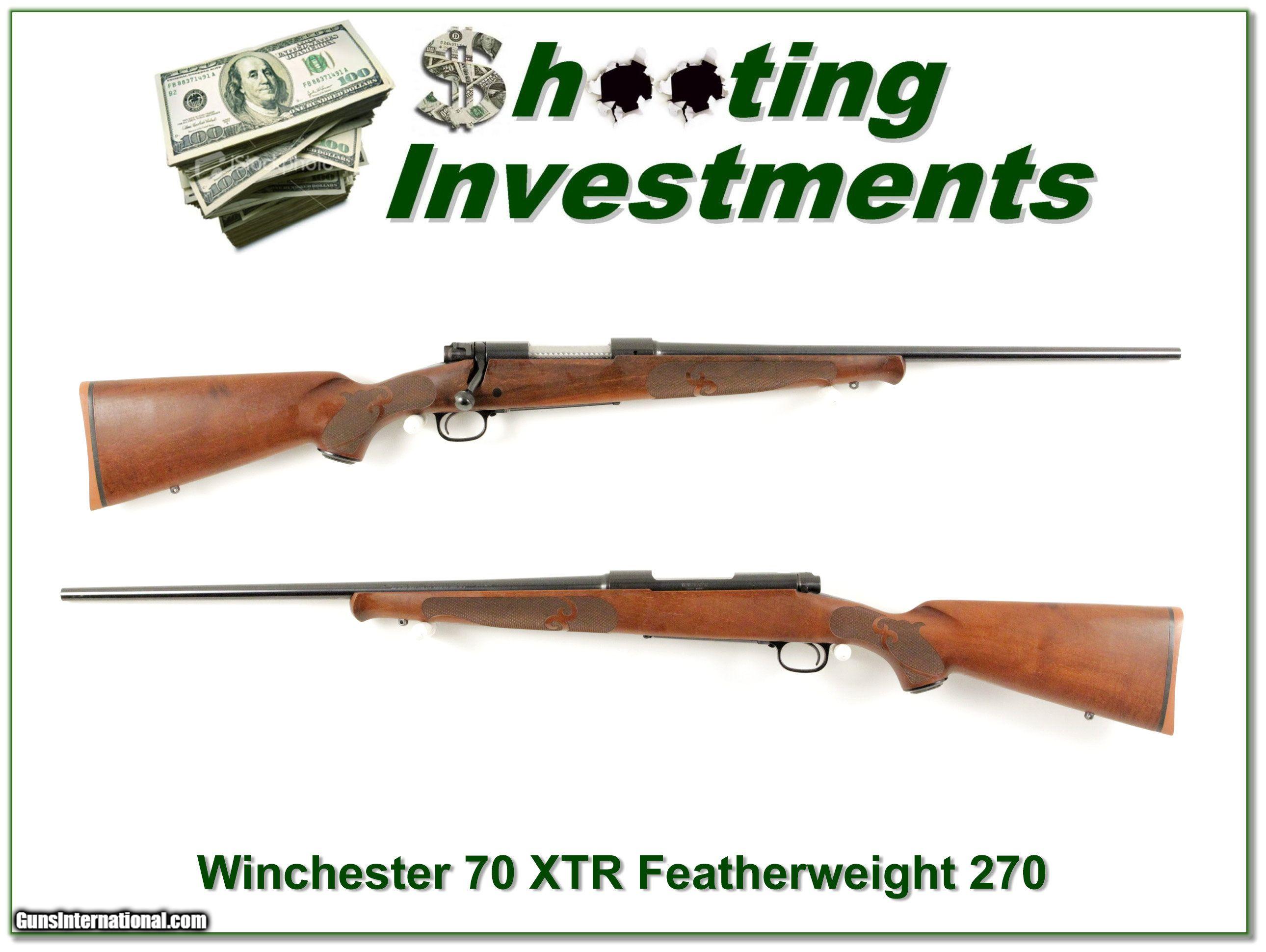Description: This is a beautiful Model 70 XTR Featherweight. It is in excellent condition. The blue is about new! The barrel is 22in. The wood is excellent with only a couple insignificant handing marks. It will make a classic hunting gun or fine addition to your collection! These XTR’s are starting to really go up in value! Shipping and insurance is $39 or $19 more if you want it shipped in a new Plano hard case. Please email me with any questions or larger pictures. (Consign your quality firearms with Shooting Investments for only 10%! Let me know if you have any you would like to sell!) 18-0169 Payment: Payment is by Money Order, Cashiers Check or Personal Check. I can now also accept MasterCard and Visa with a 3% convenience fee. PayPal can be used for some items but never firearms. Please let us know if you would like to pay via PayPal. Shipping: The shipping charge will be listed in each description. It is $39 for most long guns and $29 for most handguns. Some heavy guns or those insured for over $2000 will be higher. Shipments to Alaska and Hawaii are higher because air shipment is required. Most firearms are shipped on Tuesday and Thursday and usually in 5 days of receipt of payment. We package all shipments carefully and insure them. For long guns you can purchase a new Plano case for $19. They now cost us $22 when buying 100 at a time. Optics are shipped Priority Mail and most other non-firearm shipments are shipped First Class. Returns: Our return policy is simple. If for any reason you are not pleased with your purchase, you may return your item for a full refund of purchase price. Ammunition cannot be returned. It is important to us that you are happy. Guns cannot be fired or dissembled before returning them and they must be returned in the same condition as received. Notification of a return must occur with-in 3 days of receipt at your dealer. Shipping, convenience and dealer fees are not refundable and are the responsibility of the buyer. Lay-a-way: If needed, we offer a 60 day lay-a-way option on most firearms. It is 1/3 now, 1/3 in 30 days and 1/3 in 60 days. Lay-a-way firearm sales are final and if not completed the first payment cannot be returned. Consigning your firearms with Shooting Investments: We will help you get top dollar for your firearms. While most local guns shops charge 20% or more, our fee is only 10% with a minimum of $75. At your local gun shop it might take months to sell. Selling on-line provides instant access to thousands of interested buyers. You won’t find any other on-line dealer willing to sell your firearms for only 10% or listing every gun on 3 separate s. Selling through an House typically costs the seller 15% and the buyer an addition 15% (so 30%) and you have to wait several months to sell and longer to receive funds. If properly priced, we will sell your firearms in a few weeks. Send us an email or give us a call and we’ll explain how easy it is for you to get top dollar. Trading: Trading for use is really just buying your gun to re-sell. If you have a gun you want to trade, please email a picture and we will let you know what we can give or it. You will always get more if we sell it for you on consignment. Help for California Buyers: We are happy to ship to California. It is the buyer’s responsibility to make sure any item you buy is legal in your state. We are also happy to help with your purchase of a firearm from someone other than us. If you see a gun you would like to buy but the seller can’t or won’t ship to California they can ship to use and we’ll then ship it to your California dealer. The cost for this service is only $30 + shipping. Let us know if we can help! SOLD |