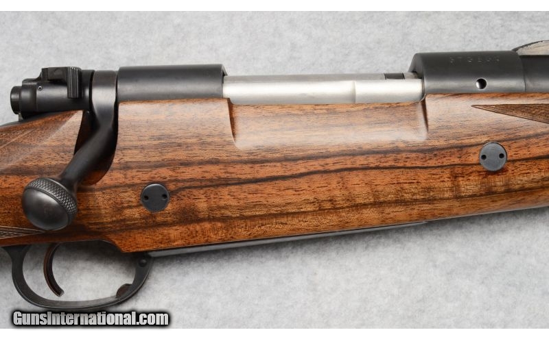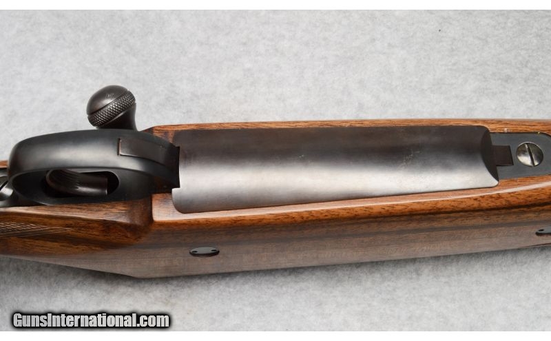 Description: SOLD Caliber Info: .450 Rigby. Metal Condition: Excellent. Wood Condition: Excellent. Bore Condition: Bright shiny with crisp rifling. Barrels: 24 Stock: Checkered walnut. Fore End: Checkered walnut. Butt Pad: Rubber recoil pad. Weight: 8-lbs., 14-ozs. Sights: Front bead, 2-postion rear blades. Item Location: Fort Worth, TX |