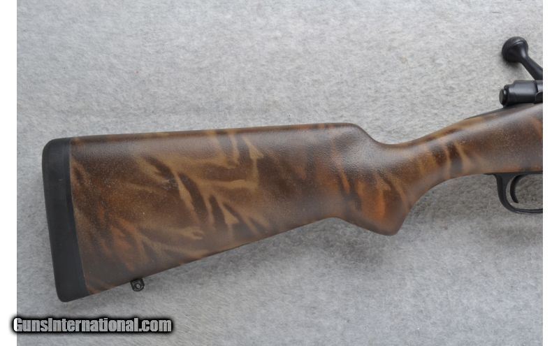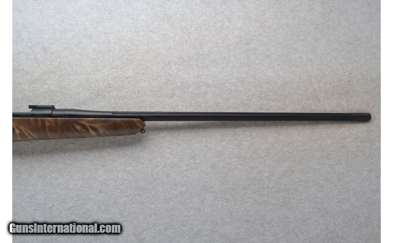 Description: This Winchester rifle is a left hand bolt action rifle in 7mm Wby. Mag. Cal. It has a 26 inch fluted matte black barrel. It has a jeweled bolt and knurled bolt handle. The lightly textured polymer pistol grip stock is in a brown and tan camo pattern. In overall very good condition it comes as is. No box. SOLD Caliber Info: 7mm Wby. Mag. Chambers: Internal magazine. Metal Condition: Excellent. A couple of very minor handling marks. Wood Condition: Small crack in stock right side next to the bolt release lever. A couple of minor handling marks. Bore Condition: Excellent. Barrels: 26 inch fluted matte black. Triggers: Grooved. Stock: Lightly textured grip polymer. Stock Dimensions: LOP 13 1/2 inches. Fore End: Lightly textured grip polymer. Butt Pad: Decelerator black rubber recoil pad. Weight: 6 lbs. 11 oz. Sights: Scope mount base attached. No iron sights. Item Location: Richfield, WI |
