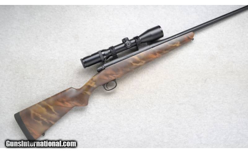 Description: This Winchester Left Hand Bolt Action Model is a rifle that comes in .300 Win. Mag. Cal. It has a 24.5 inch ported barrel that has Rifles Inc. stamped on the left side. It is outfitted with s Schmidt & Bender 1.5-6x42 Scope. The butt stock is a lightly textured grip polymer pistol grip. The forearm is a lightly textured grip polymer. It comes in a browned camo pattern. The bolt is jeweled, and the bolt handle is checkered. .300 Winchester Magnum SOLD Chambers: Internal magazine. Metal Condition: Good. Minor handling/use marks. Bore Condition: Excellent. Barrels: 24.5 inch ported barrel. Rifles Inc. is stamped on the barrel. Stock Dimensions: 13 1/2 inches. Fore End: Lightly textured grip polymer. Butt Pad: Decelerator black rubber recoil pad. Weight: 7 lb. 10 oz. Sights: Schmidt & Bender 1.5-6x42 Scope. Item Location: Richfield, WI |