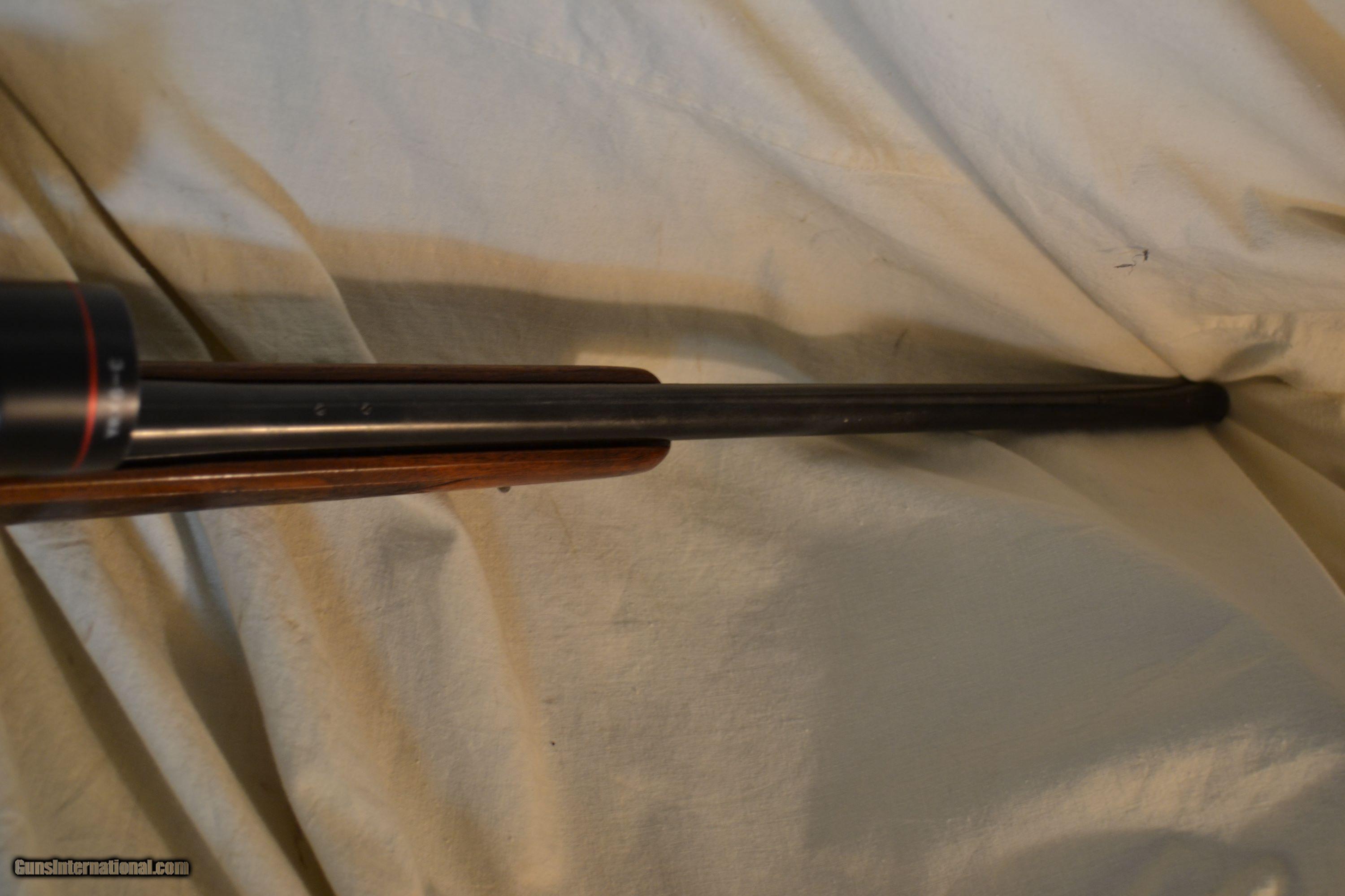 Description: Reduced ! Winchester M-70 Deluxe - These are the post 64 that used the better Walnut. This one is ready for your next big game hunt & at a great price ! This Winchester M-70 Cal 30.06 was mfg about 1966 and has some nice history behind it. According to the estate It was used by the owner to hunt bear in the Nothwest - including Alaska; to hunt deer in Oregon, to hunting Elk in Colorado. It's in good condition w/some light handling marks and some thinning varnish but no gauges, scratches or dings w/a thin White Line pad and a line of pull of about 13 3/4" to 14"(It may not have been cut hardly at all). The metal is about 90% w/some edge wear and some at the muzzle (The muzzle measures about less than 1) - very good for a 52 year old firearm, The bore is a mirror w/a good strong twist. The barrel is a 22" The action is very smooth and firm.The floorplare shows some edge wear and of course functions normally. It comes w/a Simmons 3 x 9 WXA w/good sharp reticles and very clear glass. Ther is no corrosion or spotting which indicates to me that it was kept out of weather changes. The overal condition is to me about an NRA Very Good. marks SOLD Manufacturer: Winchester Model: M-70 Serial Number: 853756 Caliber Info: 30.06 Condition: NRA Very Good Metal Condition: Very Good |