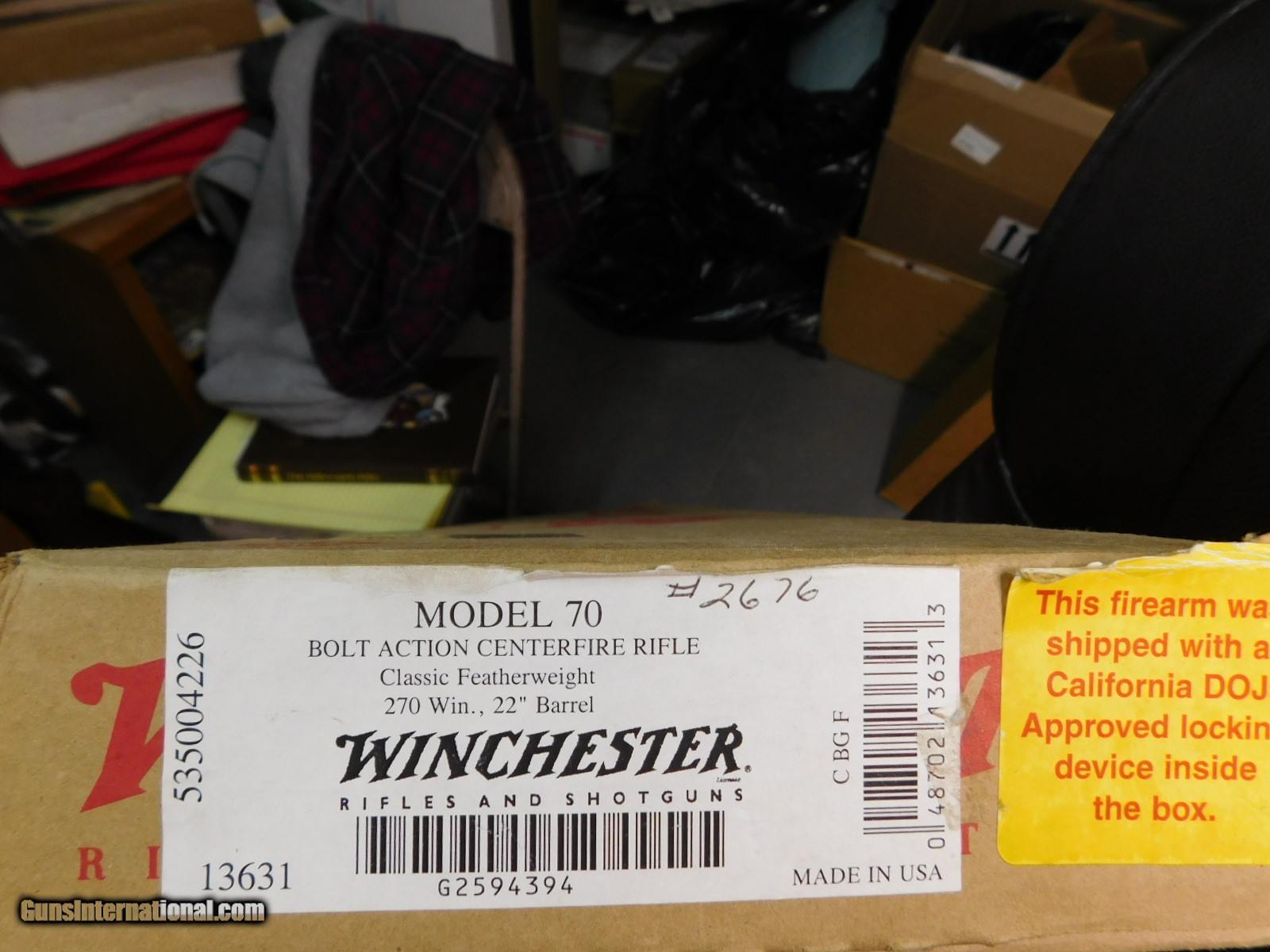 Description: Winchester M70 Classic Featherweight,270 win.,22" Barrel,Mint Lightly Used Condition, 99% Bluing and Wood, With Matching Box and Papers!! Store hours Thurs-Fri-10AM-8PM Sat-9AM-12PM All Other times please leave a message,Thank You! No California Sales Lower 48 State Sales only Pa. Residents 6% Sales Tax applicable Shipping $ 35.00 SOLD Manufacturer: Winchester Model: M70 Post 64 Featherweight Serial Number: G2594394 Caliber Info: 270 |
