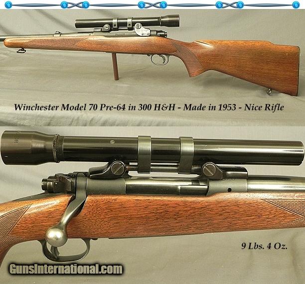 WINCHESTER MOD 70 PRE-64- 300 H&H- 1953- EXC & ORIG- PERIOD BAUSCH & LOMB 4x in B & L MOUNTS- NICE RIFLE