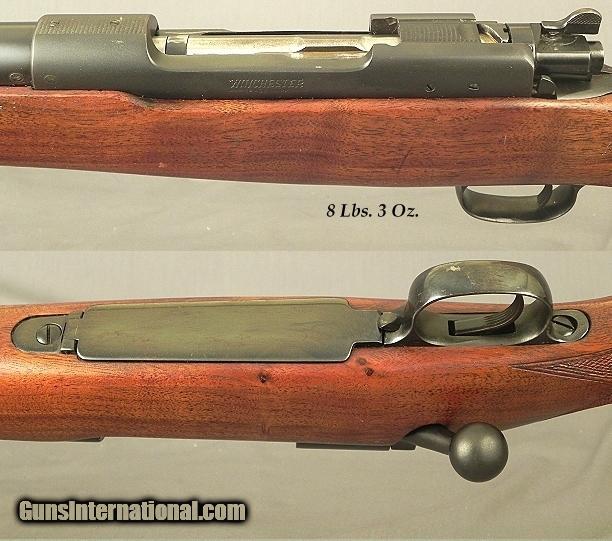 Description: #48793, Winchester Model 70 Pre-64 in 30-06 Made in 1942, Excellent & Original condition, 24" barrel, The receiver bridge never drilled or tapped, Correct Pre-War safety, Correct Buckhorn style rear sight with the thumb elevator, Factory front sight hood, Early style machined integral front ramp, Pre-War 3 position safety, Standard Model 70 hinged floorplate, Standard point pattern checkering, Sling eyes & swivels, 13 11/16" LOP over the factory checkered steel buttplate, 8 lbs. 3 oz., The original barrel blue is 94%, The receiver blue is 98%, The floorplate & trigger guard is 90%, The bolt knob is 98%, The buttplate has 90% blue, The original wood finish at 88%, The checkering is 92%, The bore is absolutely as new. This is a very honest and nice 1942 Model 70. We have 8 more Pre-64 Model 70's in 30-06 and 4 each in 270 Winchester. SOLD Curio/Relic: Yes |