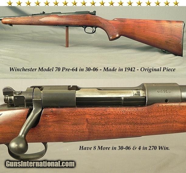WINCHESTER MOD 70 PRE-64 in 30-06- HAVE 8 MORE in 30-06 & 4 in 270 WIN.- MADE in 1942- ORIG. & REMAINS at 90% OVERALL- THE BORE REMAINS as NEW