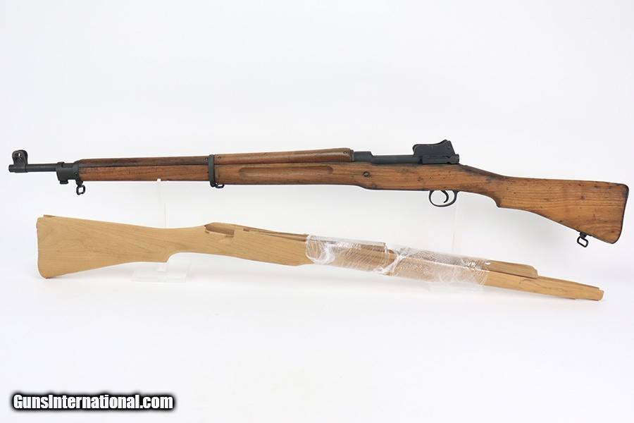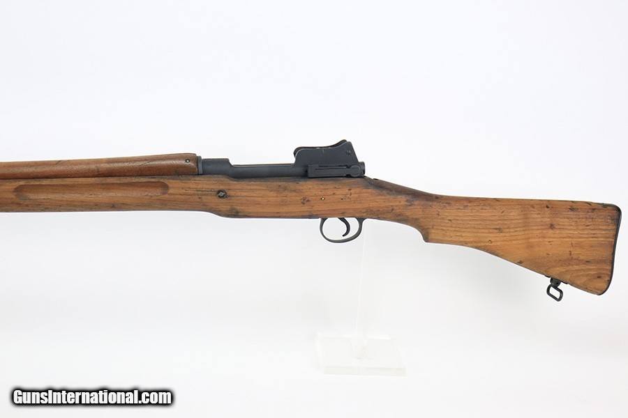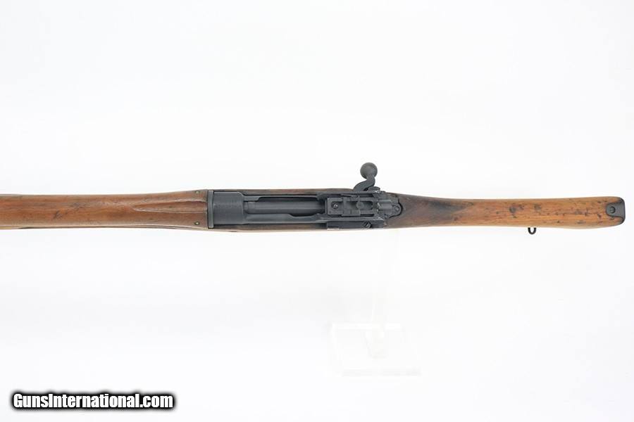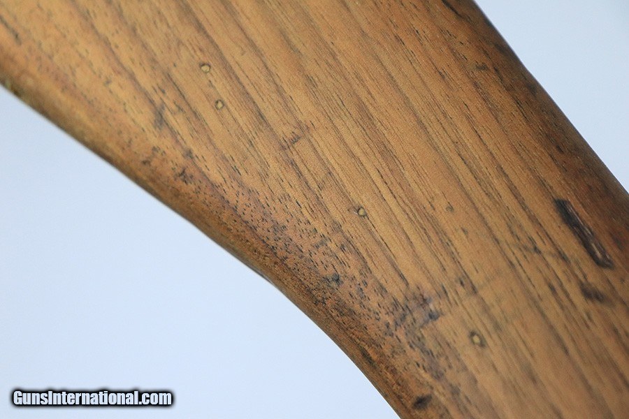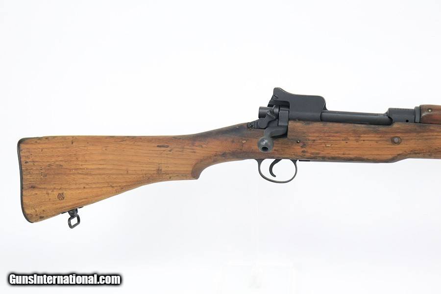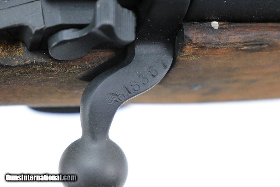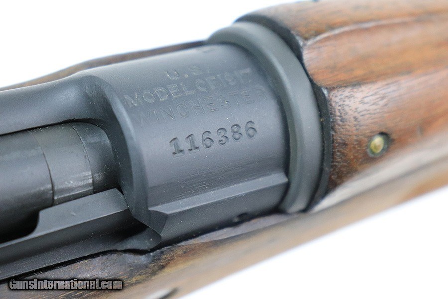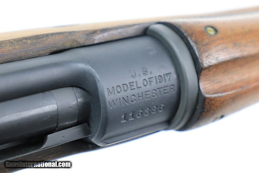 Description: This is a nice example of a Winchester Model 1917 rifle from 1918. The barrel and bolt handle are marked with a correct "W" and the receiver is marked Winchester with a serial number dated to December 1917. The barrel is dated for January 1918, suggesting the receiver and barrel were paired in early 1918. The rifle has been re-parkerized and thus the finish is in overall excellent condition with minor handling wear here and there. The stock has been sanded, showing minor handling wear throughout and features a WWII Canadian Lend-Lease cartouche. The bore shows strong rifling, but shows areas of heavy frosting throughout. SOLD Curio/Relic: Yes Rifle Caliber: .30-06 Springfield Bore: 5/10 Condition: Restored |