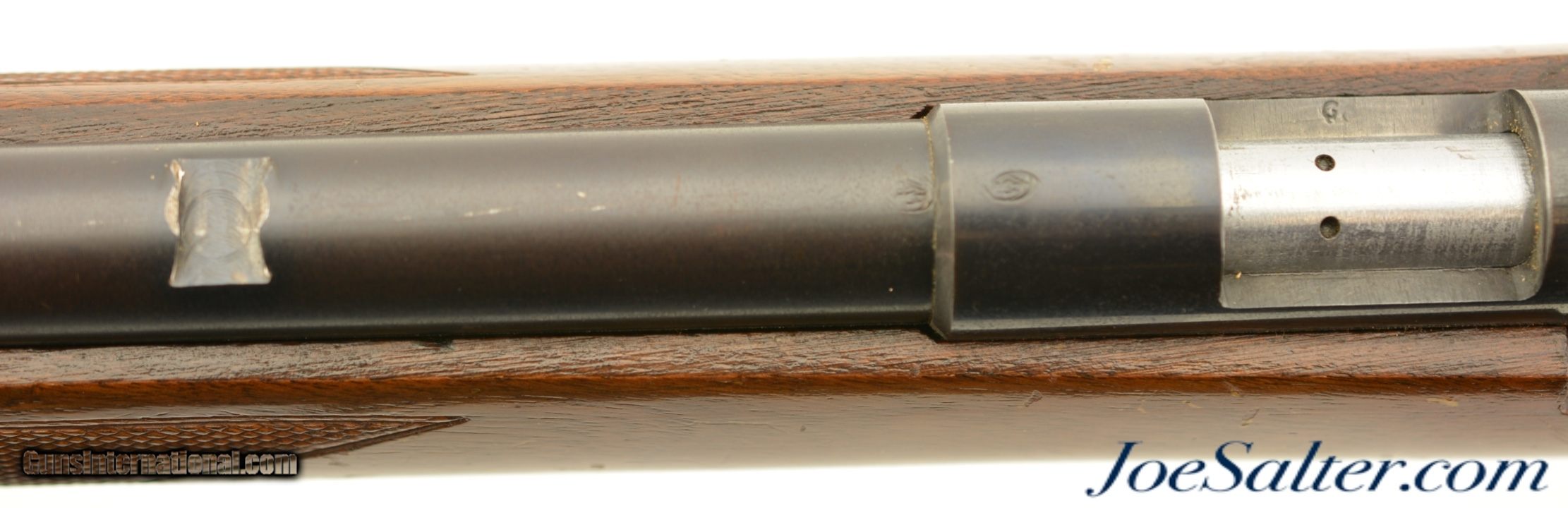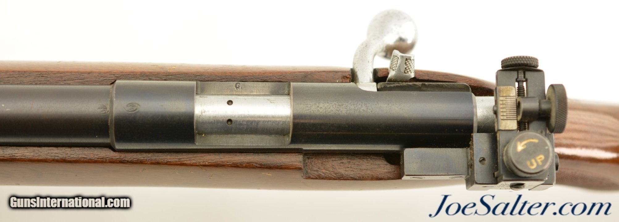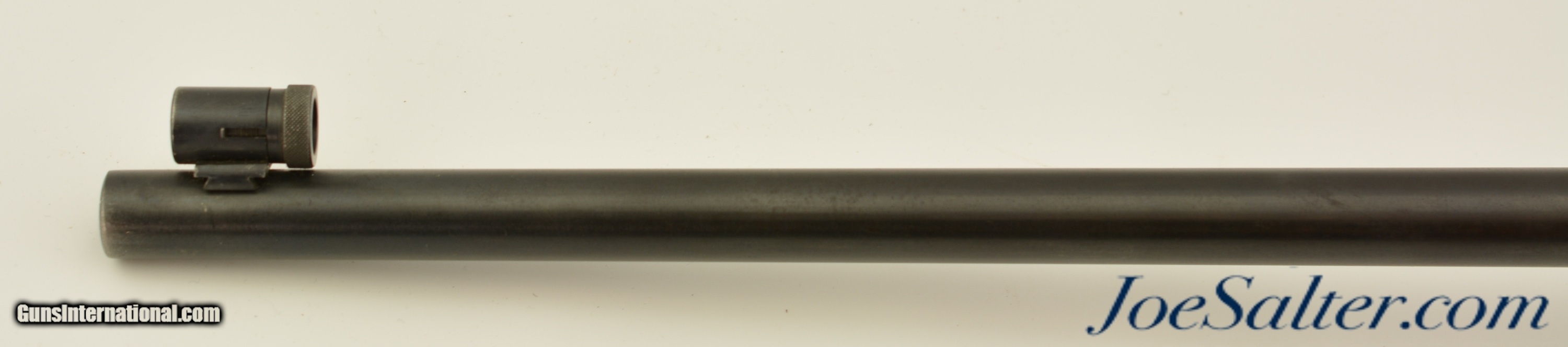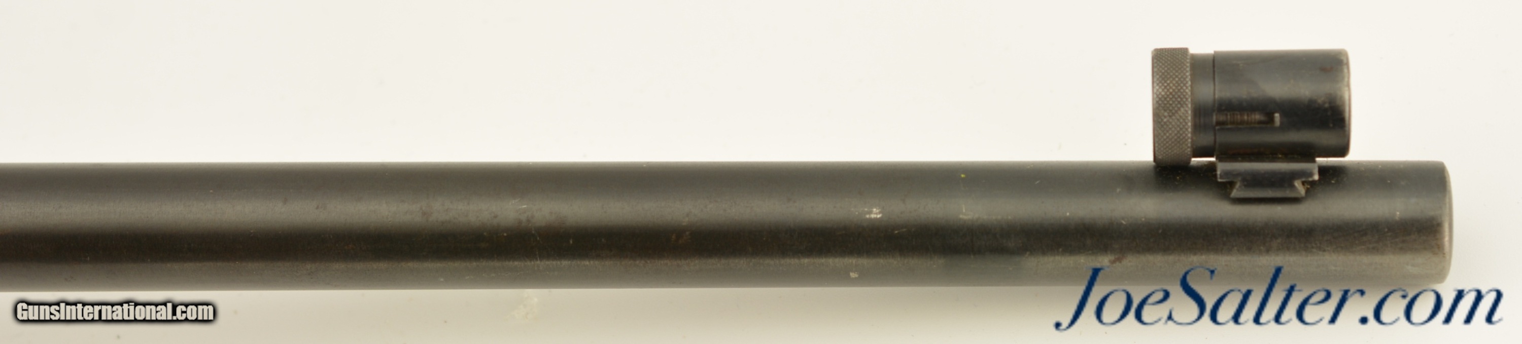 Description: Serial #NSN, .22 S, L, LR, 25 inch barrel with a bright, excellent bore. This is the model 47 Winchester bolt action, single shot rifle featuring an automatic safety and red fire ready indicator manufactured from 1948-54 and was the first post war production rifle after WWII. The target rifle retains about 85-90% of the original thinning blue with light scattered freckling. The bolt, safety lever and trigger retain virtually all of the original chrome plating. The checkered walnut stock is solid with scattered mild scratches and contusions having an added sling swivel and a hole on the tip from a previous one. It is sighted with a Lyman receiver mounted peep sight and hooded round front sight. The original plastic butt plate has a crack at the toe. Mechanically it functions properly and looks like it will make a very good target gun. FFL or C&R SOLD Curio/Relic: Yes |
