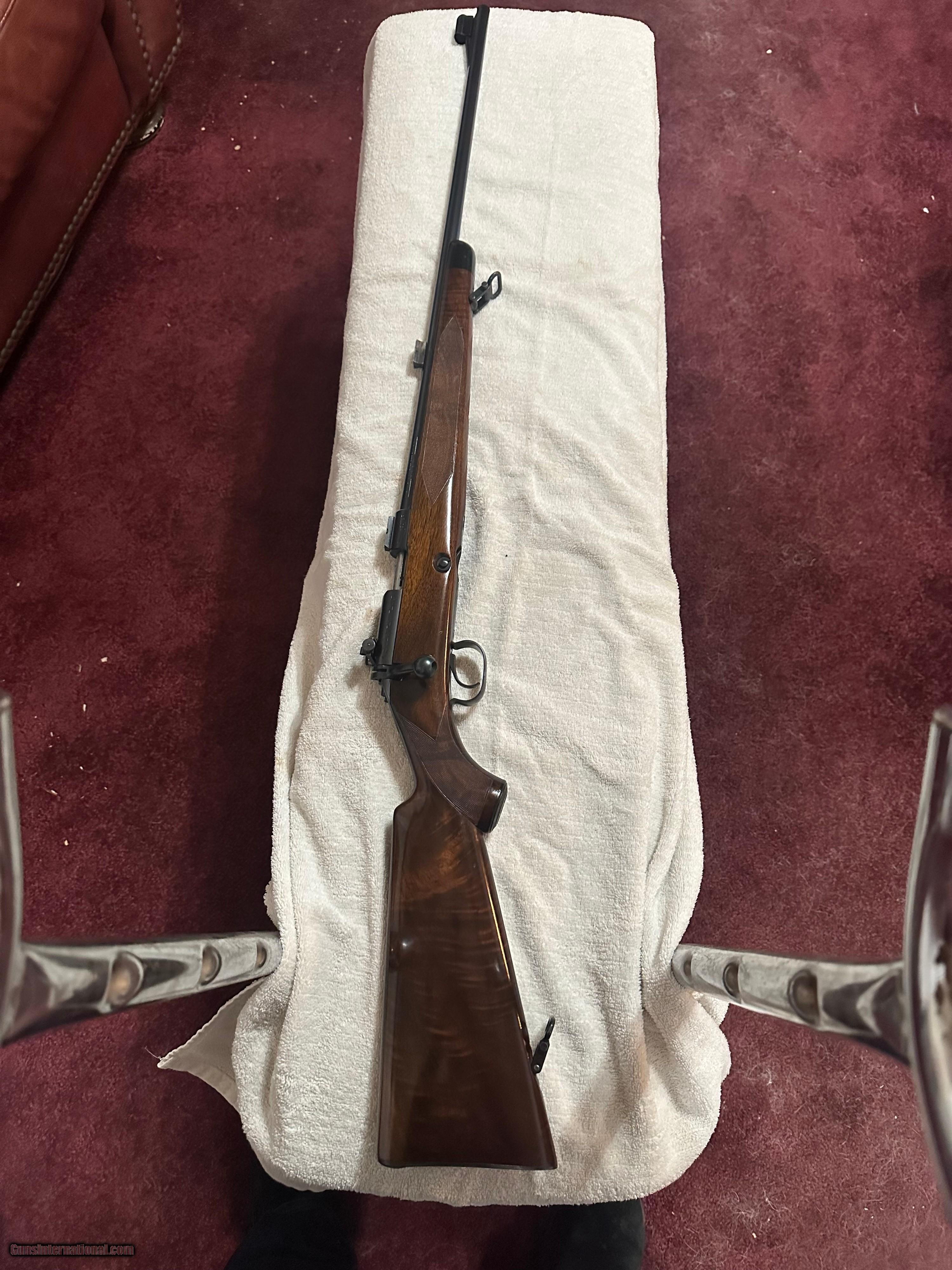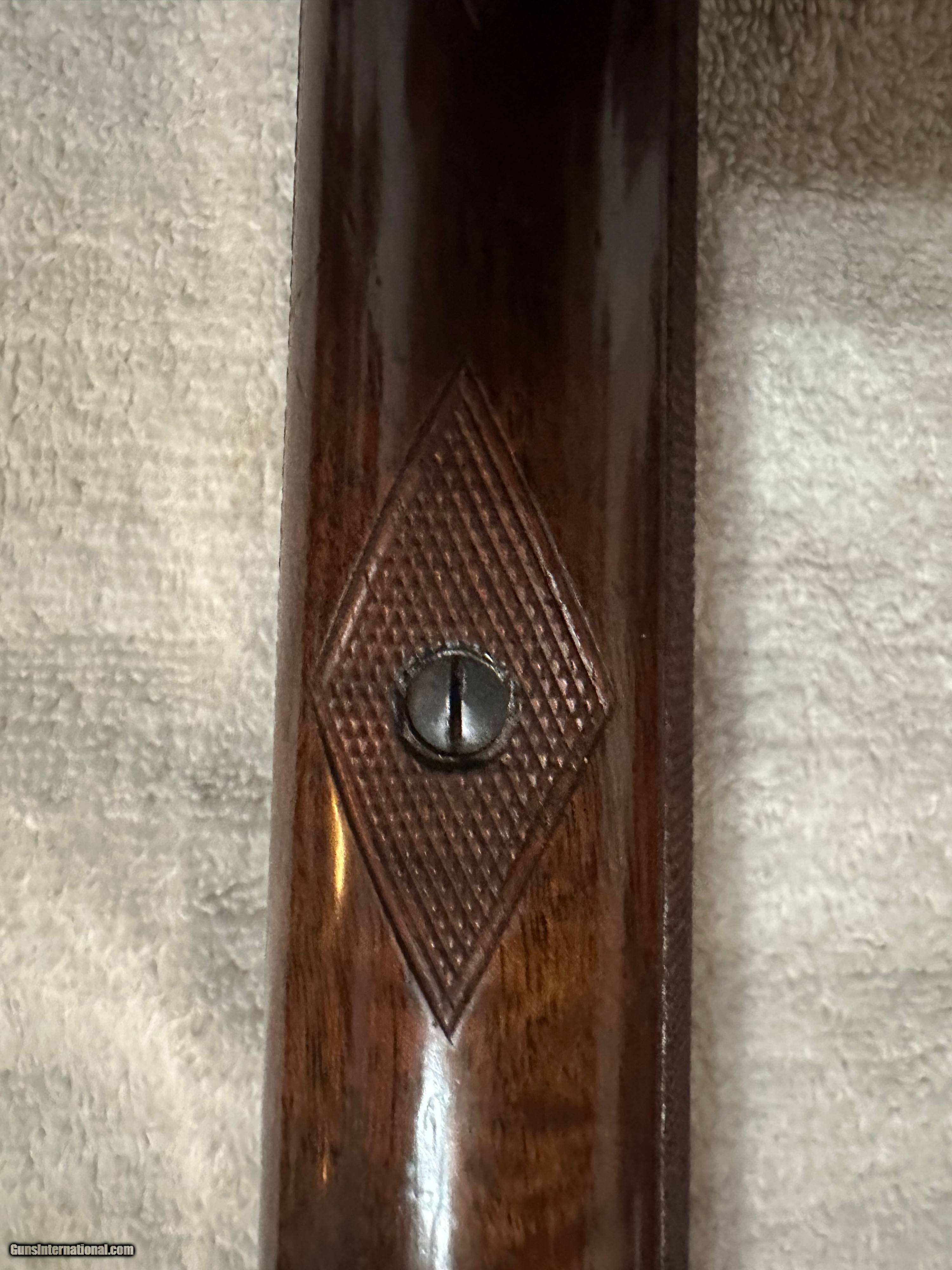 Description: SOLD Curio/Relic: Yes Rifle Caliber: .22 Long Rifle Manufacturer: Winchester Model: 52 Serial Number: 36340 Barrel Length: 24 Condition: excellent Metal Condition: excellent Wood Condition: excellent Bore Condition: excellent Stock Heel: steel crescent perfect Fore End: excelent Butt Pad: steel crescent perfect Finish: perfect excellent Sights: original , perfect Manufacture Date: 1937 |