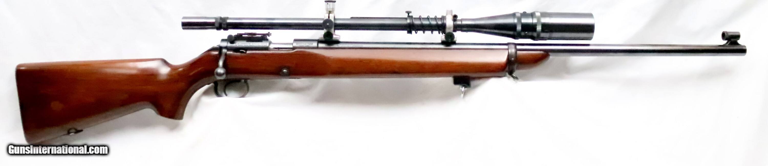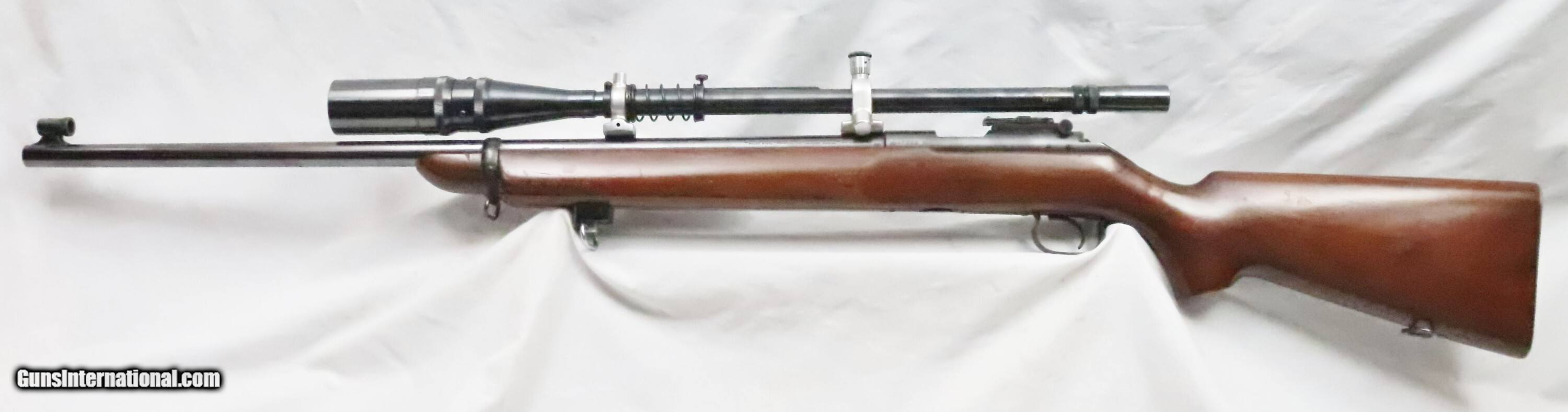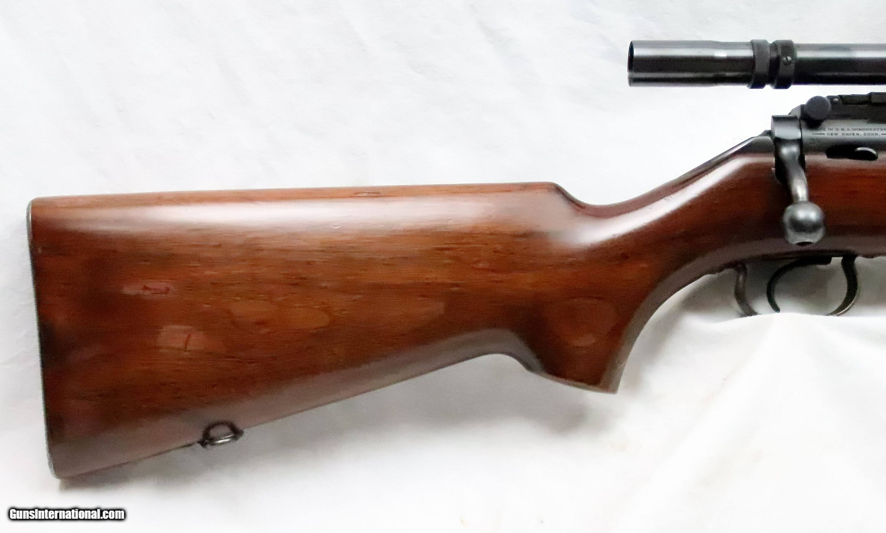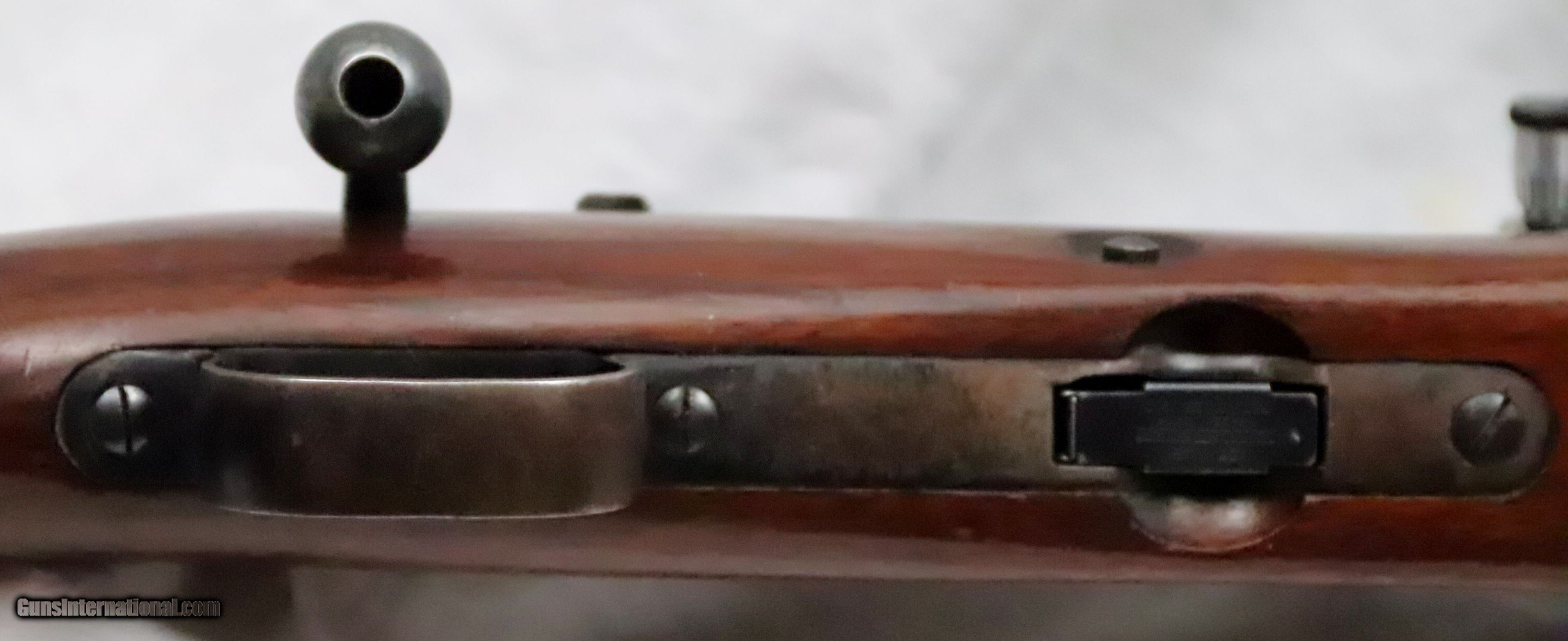 This early Winchester target rifle remains a classic. A Unertl target scope is mounted providing 20X tack driving power. The scope has fine cross hairs and clear optics. The rifles bore remain excellent, and the action works as new. The bolt is numbered to the rifle. The blue remains excellent with the exception of the trigger guard. For some reason I’ve found these early Winchester trigger guards have a tendency to turn brown. Certainly, an easy fix. The stock is in beautiful condition with only a few modest bruises and handling marks that are to be expected after an 88 year life. A classic Winchester M-52B Target rifle. Caliber .22 LR with a 28 in. barrel. SN: 47523B. FFL or C&R REQUIRED