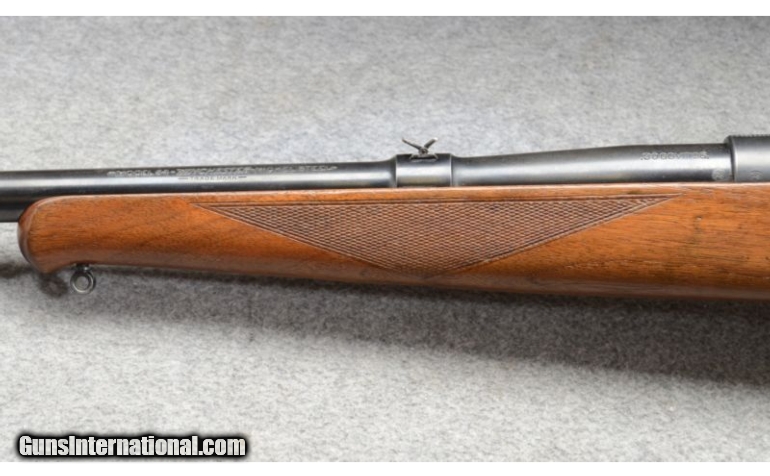 Description: SOLD Manufacturer: The year of manufacture for serial number 132xx is 1927. Caliber Info: .30-06 GOV Metal Condition: Good to Very goods. Bluing has faded to bluish grey and there is some shallow handling marks. Wood Condition: Good. Checkering is pretty flat, but all there. Some digs and scratches, none severe. has an empty sling swivel ole in forearm. Bore Condition: Bright and shiny Barrels: 24 inch Stock: Pistol grip walnut Stock Dimensions: 13-3/4 inch LOP Fore End: Schnabel tip Butt Pad: Steel plate Weight: 7-3/4 lbs Sights: Gold bead and folding leaf open sights. Lyman peep sight Item Location: Rogers, MN, MN |