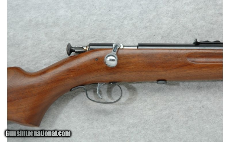 Description: SOLD Caliber Info: .22 Short, Long and Long Rifle. Chambers: Single shot. Metal Condition: Very good. Wood Condition: Good with light handling marks. Appears to have been revarnished. Bore Condition: Very good. Barrels: 27 inches. Stock: Smooth walnut straight stock. Stock Dimensions: LOP 13 1/4 inches. Fore End: Smooth walnut with finger grooves. Butt Pad: Checkered Winchester black plate. Weight: 4 lbs. 13 oz. Sights: Short blade front. Adjustable middle. Item Location: Richfield, WI |