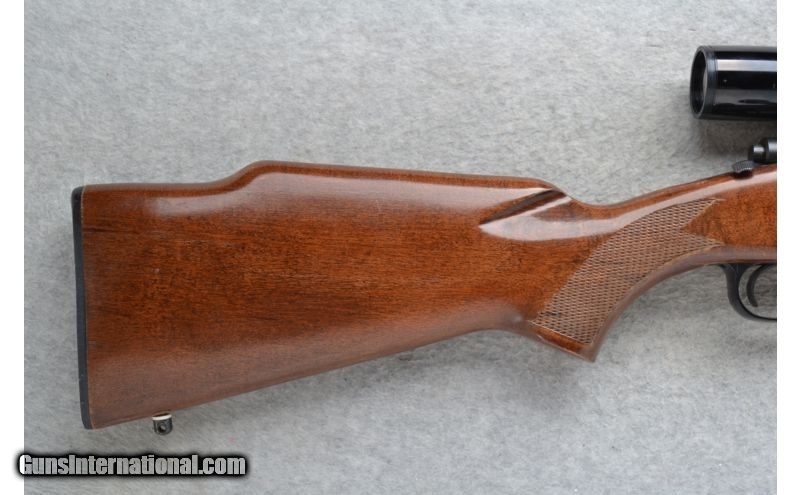 Description: This Winchester Model 670 is a right hand push feed bolt action rifle in .30-06 Springfield. It has a 22 inch barrel and a checkered walnut Monte Carlo pistol grip stock. It is outfitted with a Bushnell Sportview 4x-12x - 40 Scope. It has a ramped front blade sight and a ramped adjustable notch middle sight. With swivel studs. In overall very good condition. SOLD Caliber Info: .30-06 Springfield Metal Condition: Excellent Wood Condition: Good. Has some light handling marks. Bubble surface defect right side buttstock Bore Condition: Excellent Barrels: 22" Blued Steel Triggers: Adjustable Single Stage Trigger Stock: Checkered Walnut Stock with Monte Carlo Comb and Pistol Grip Stock Dimensions: LOP: 13 1/2 Fore End: Checkered Walnut Fore Arm Butt Pad: Winchester Butt Plate Weight: 8 lbs. 8 ozs. with Scope mounted. Sights: Bushnell Sportview 4X-12x-40 Scope. Ramped front blade. Adjustable notch middle on a ramp. Extras: Comes with a Bushnell Sportview Scope, scope base and rings. Item Location: Hamburg, PA |
