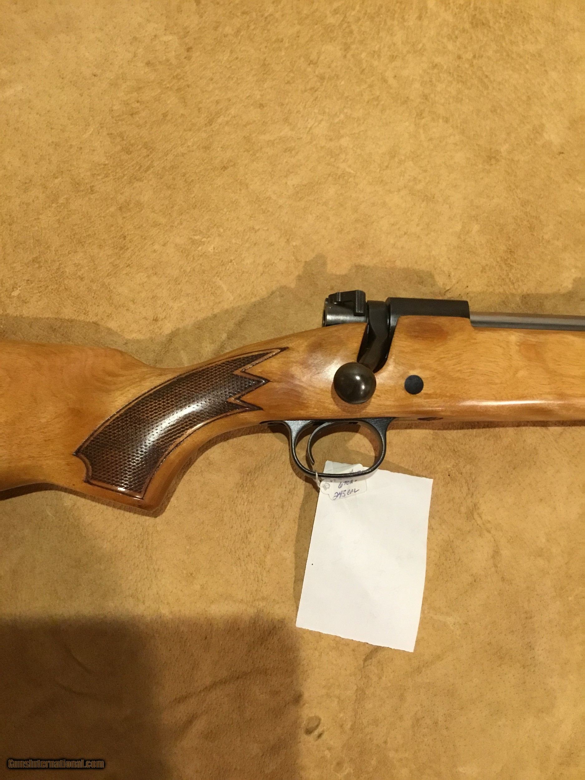 Description: What a sweet heart , Winchester 670A chambered in 243 win. , 22 inch barrel, beautiful birch stock, bluing is near perfect, this rifles is near mint, no marks that I can see. Action is drilled for scope mounts, free shipping , no credit card fees SOLD Manufacturer: Winchester Model: 670A Serial Number: G152875 Caliber Info: 243 win Condition: Excellent Metal Condition: Excellent Wood Condition: Excellent Bore Condition: Excellent Action: Bolt action Stock: Birch |