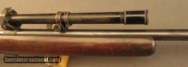 Description: S# NSN, 22 Short, long or long rifle, 25 inch barrel, bright excellent bore. This rifle was built from 1935 to 1937 and it wears a factory mounted 2 3/4 power scope as indicated by offset Winchester proofs on barrel and receiver. Scope has semi clear optics, crosshairs are broken, scope shows 80% black Japanned finish over brass tube. Rifle retains about 65% blue with staining and wear, barrel has no rear sight seat. Wood shows typical dings and marks, holes are added at toe and forend tip for sling studs, now missing. Comes with one long or long rifle magazine. An interesting pre-war rifle with factory mounted scope needing a little attention. FFL or C+R SOLD Manufacturer: Winchester Model: 69 Serial Number: NSN Caliber Info: 22 S, L +LR Gauge Info: 22 S, L +LR |