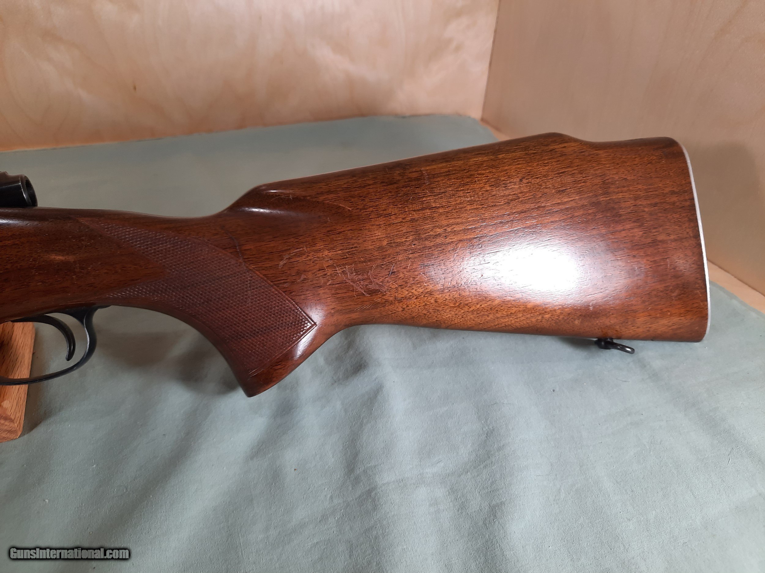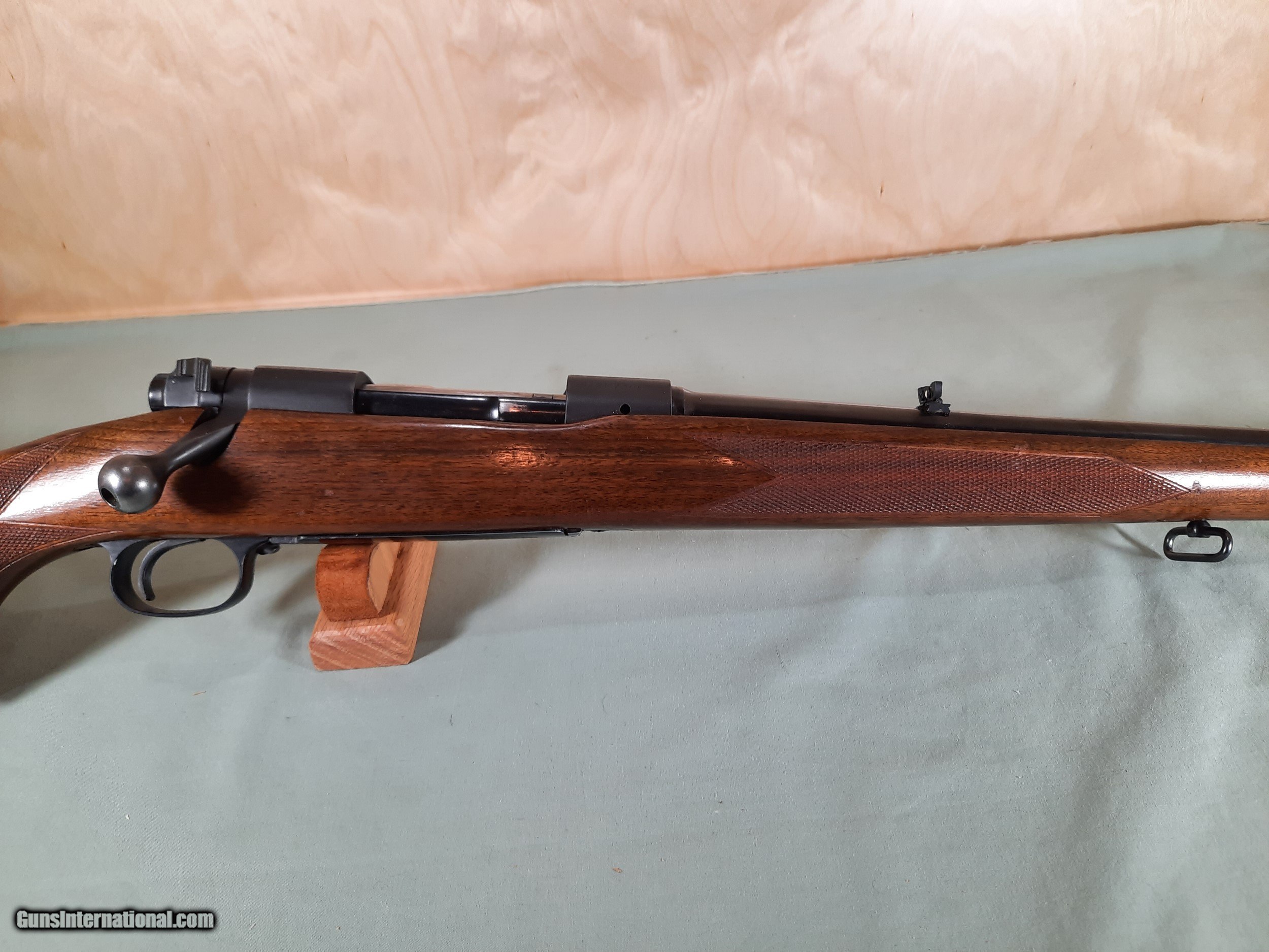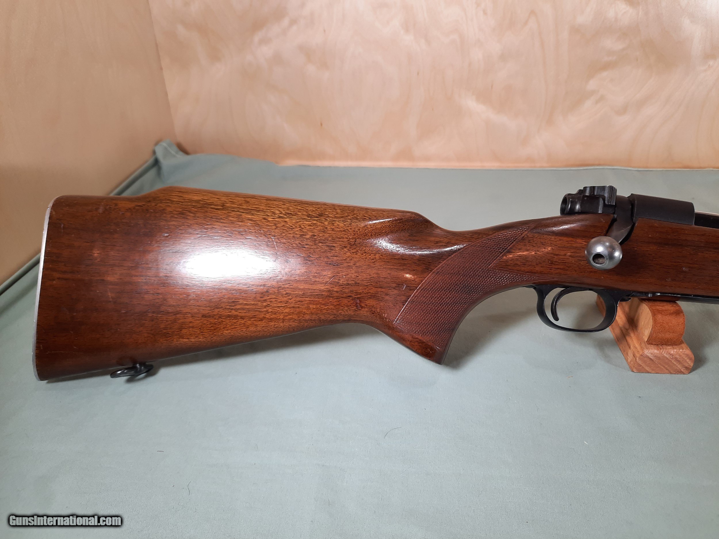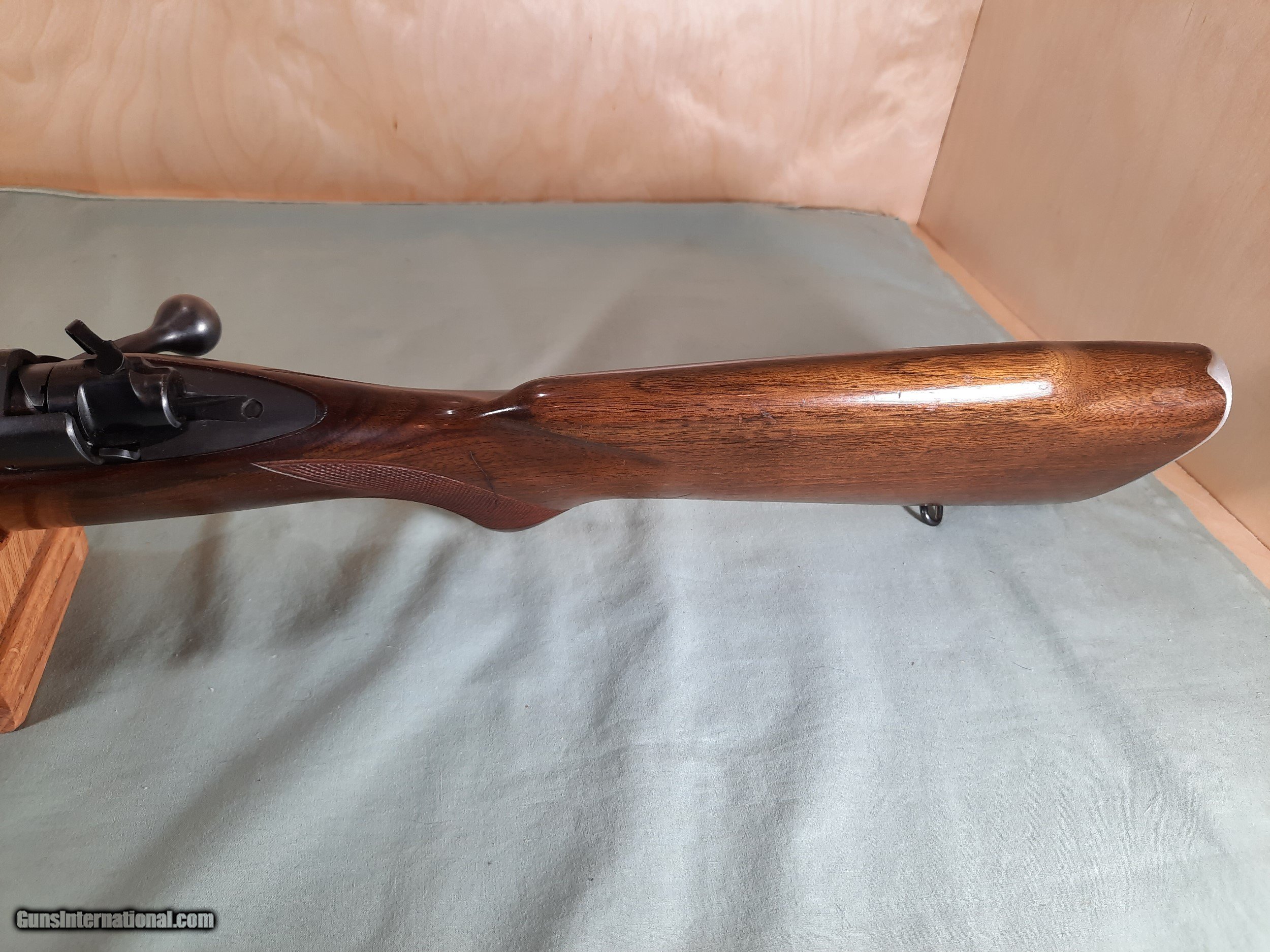 Description: This rifle is a pre 64 Winchester Model 70 243 Featherweight. The rifle is in fine or better condition with minium hunting/carrying marks. The bore and chamber are perfect. The walnut stock is original with the aluminum butt plate and the checkering is strong. Serial Number 36739X. CIRCA 1956. NO CALIFORNIA SALES SOLD SOLD |