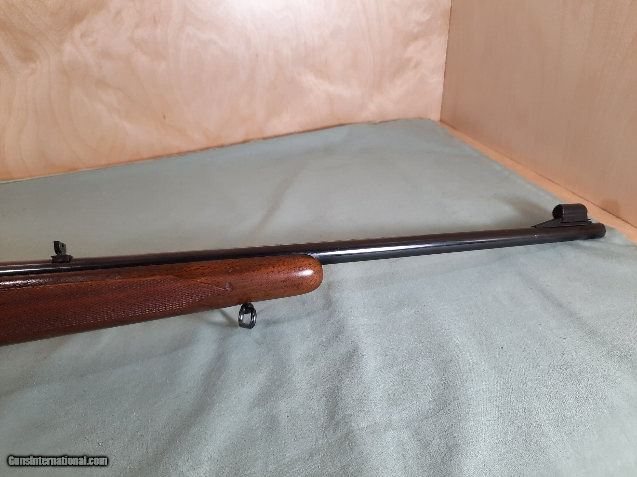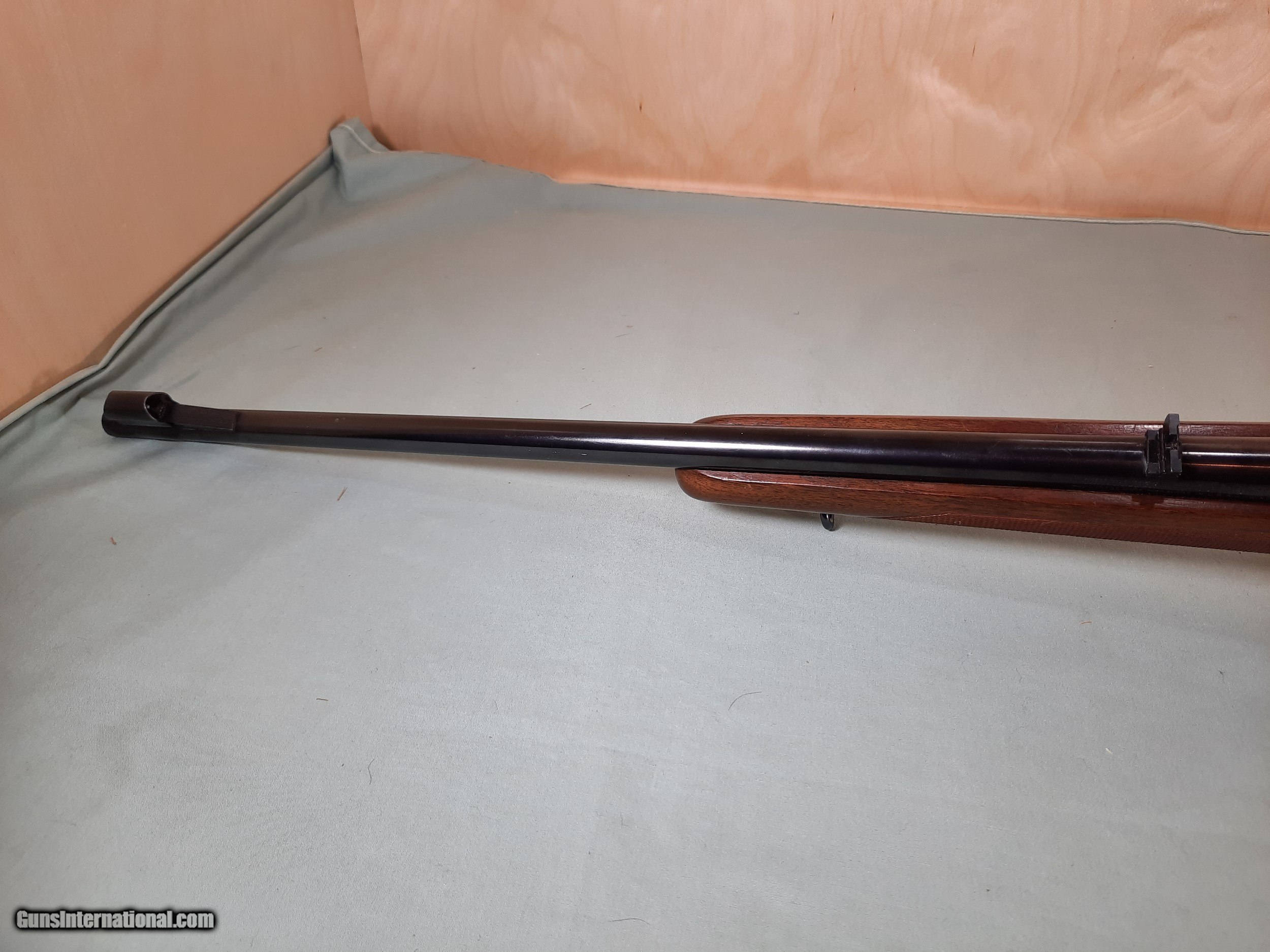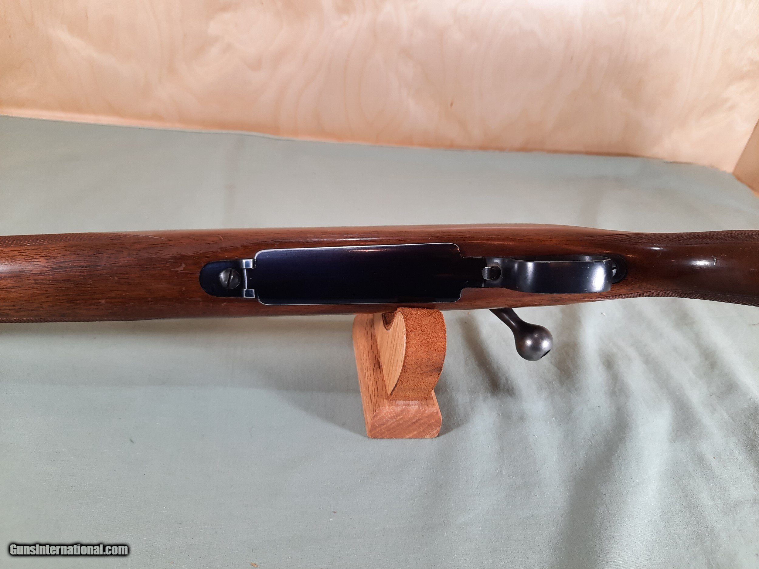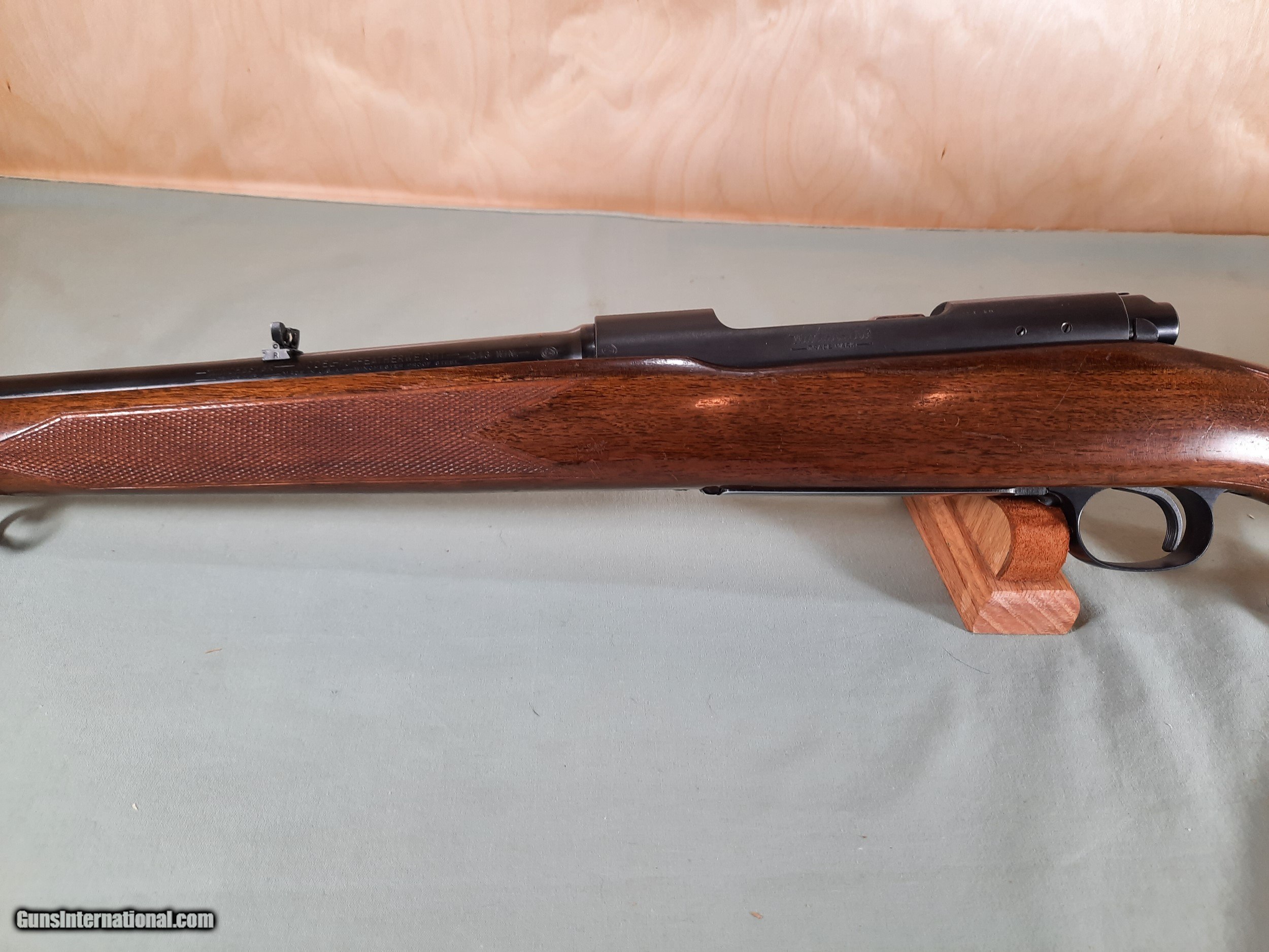 Description: This rifle is a pre 64 Winchester Model 70 243 Featherweight. The rifle is in fine or better condition with minium hunting/carrying marks. The bore and chamber are perfect. The walnut stock is original with the aluminum butt plate and the checkering is strong. Serial Number 36739X. CIRCA 1956. NO CALIFORNIA SALES SOLD SOLD |