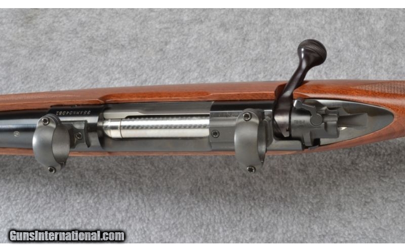 Description: Excellent throughout complete with box and rings. Controlled round feed model. SOLD Manufacturer: S/N 35AMN04XXX Caliber Info: .30-06 Metal Condition: Excellent Wood Condition: Excellent Bore Condition: Excellent Barrels: 24 Triggers: Factory Stock: Checkered Walnut Pistol Grip with Black Cap Stock Dimensions: 13 1/4" LOP Fore End: Checkered Walnut Butt Pad: Black Rubber Weight: 8 1/4 LB Sights: None - Rings & Mounts Included Item Location: Wheeling, WV |
