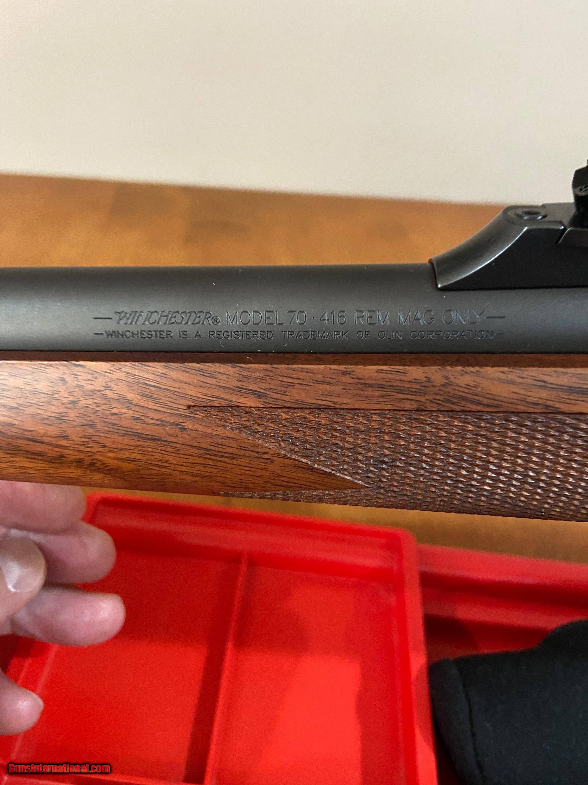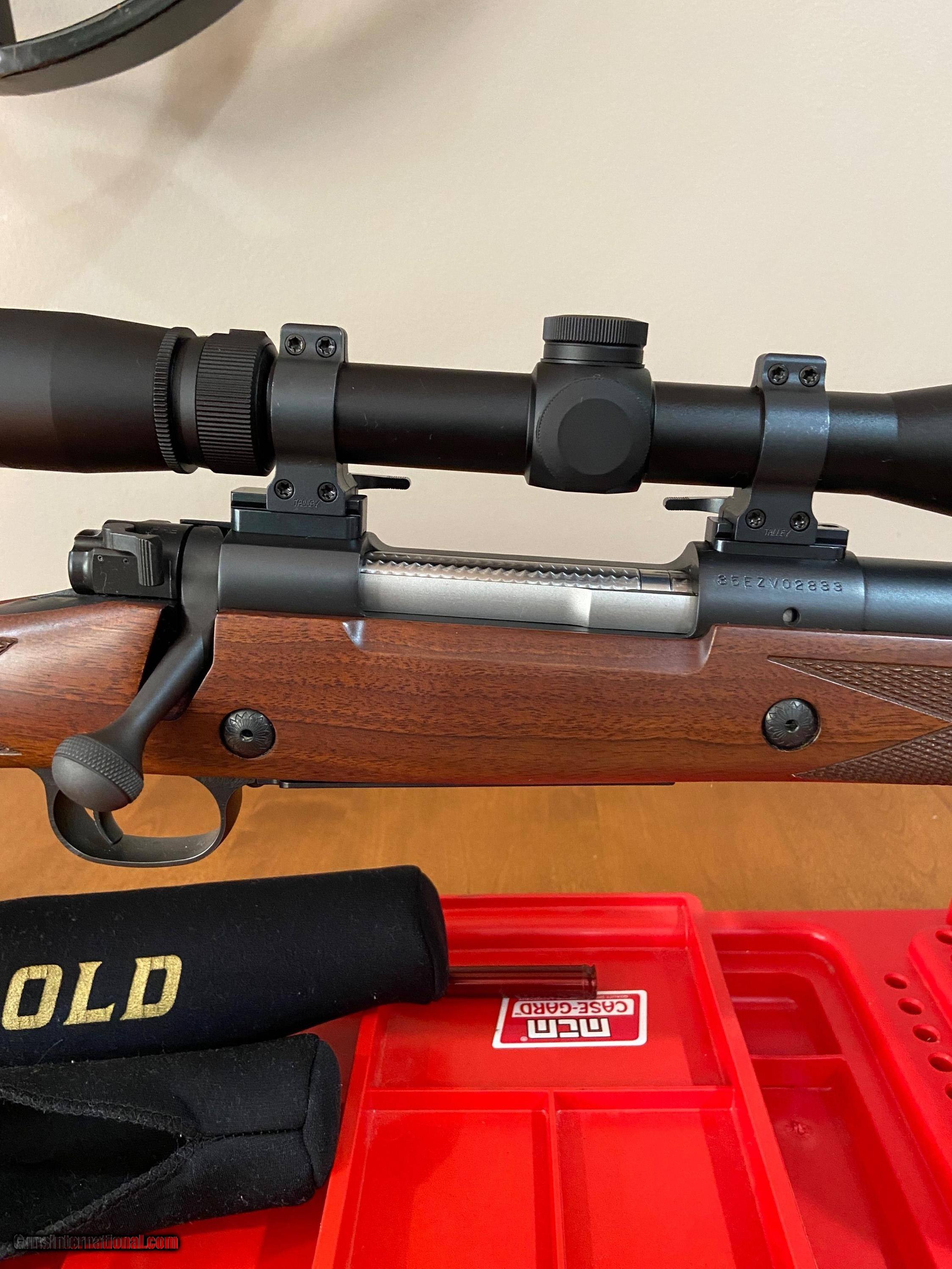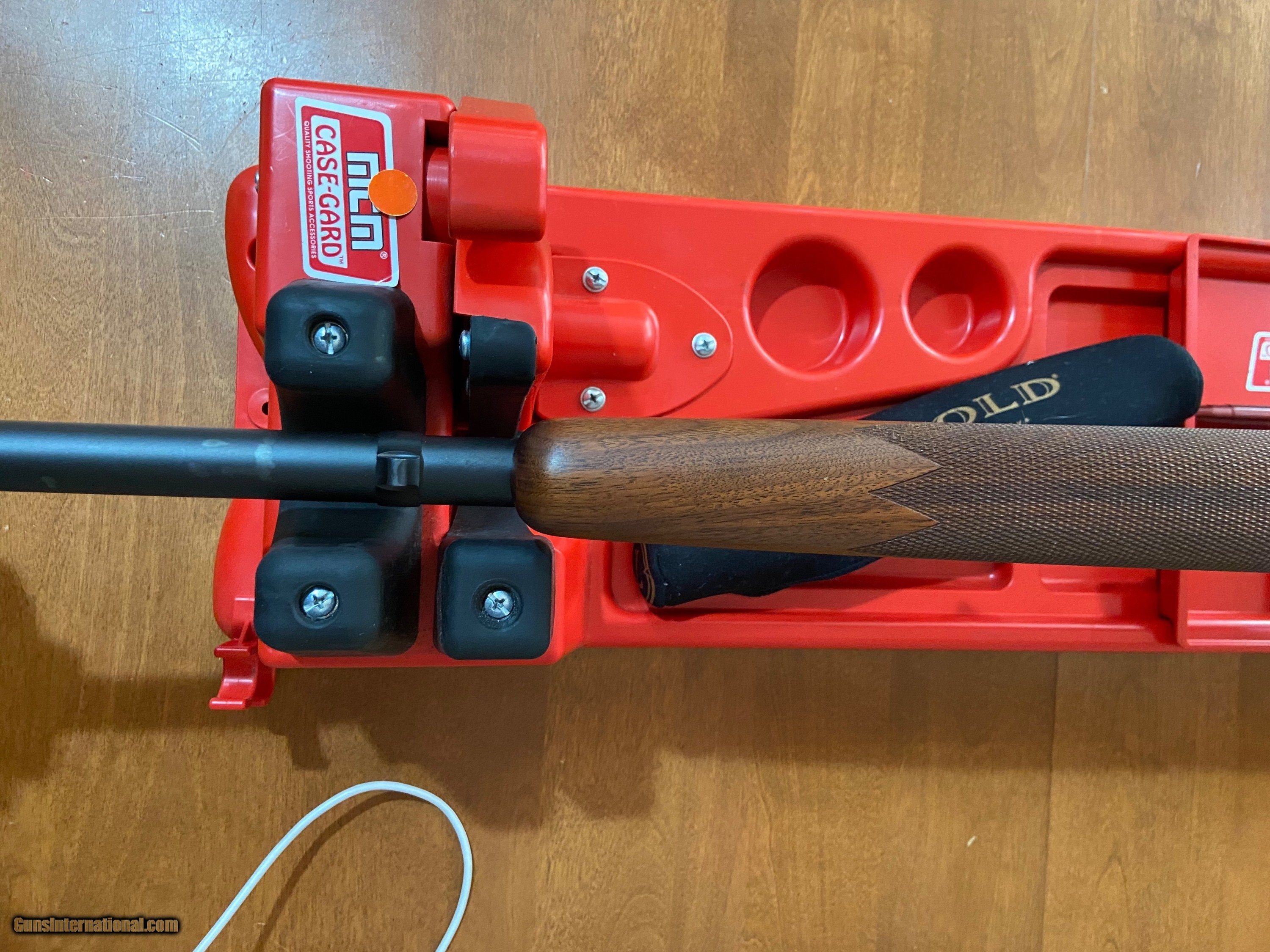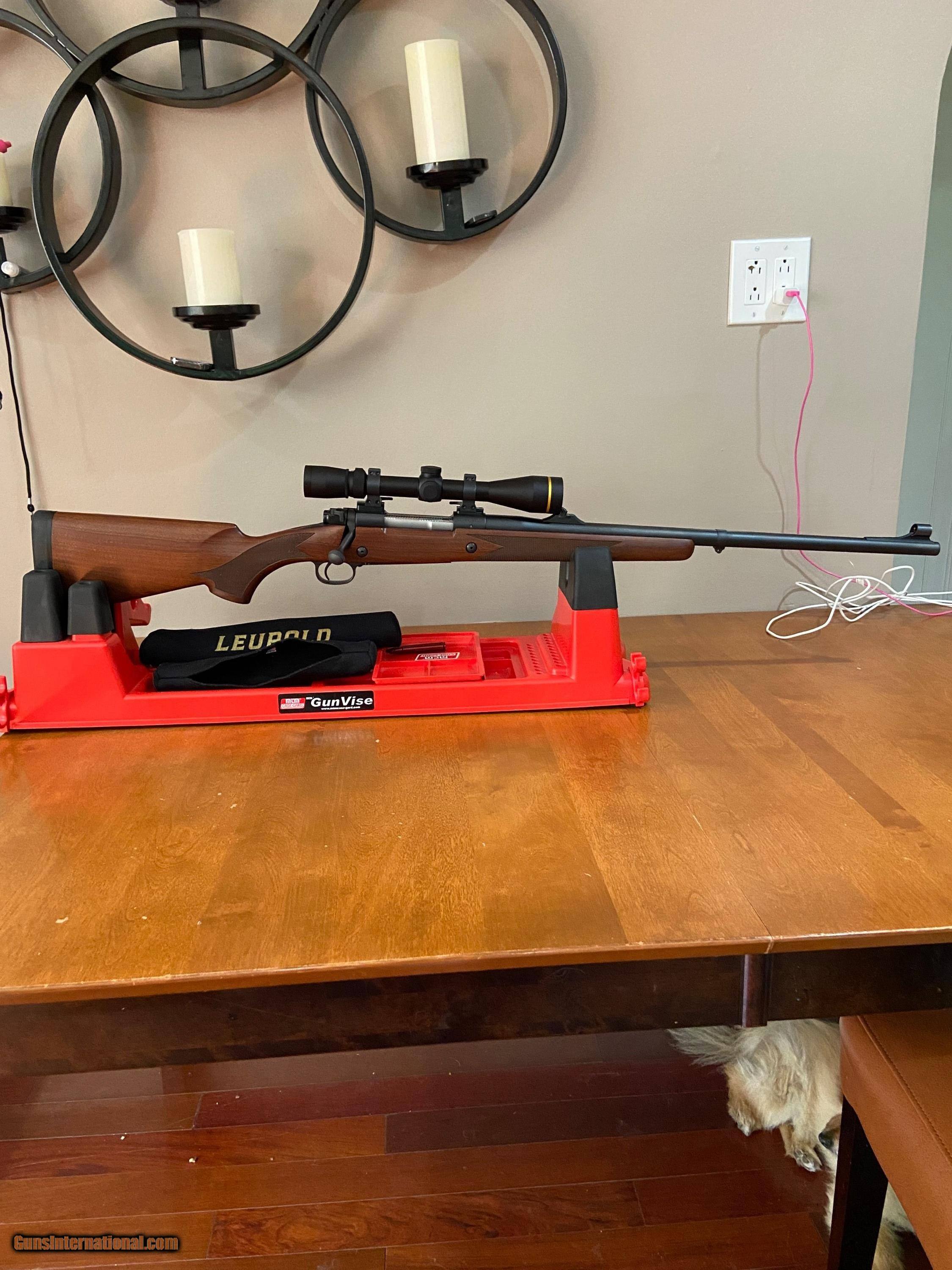 Description: Excellent Mod 70. Gun is as new with less than 50 rounds through it. Brand new scope and mounts haven't even been sighted in yet. Must ship to an FFL. Check or Postal Money Order. SOLD Rifle Caliber: .375 H&H Magnum Manufacturer: Winchester Model: 70 Safari Express Barrel Length: 24 inches Condition: Like New Metal Condition: Like New Wood Condition: Like new Bore Condition: Like New Action: Pre 64 Style Controlled Round Feed with Claw Extractor Triggers: Single M.O.A. System Stock: Satin Finish Grade 1 Walnut with Cut Checkering and Deluxe Cheekpiece Stock Drop: 1/2 at Comb 1/2 at Heel Butt Pad: Pachmayr Decelerator LOP: 133/4 Finish: Satin Weight: 9 pounds without scope Sights: Open sights and Leupold VX-3i 3.5 -10x40mm scope with Talley Quick Release Mounts and Rings Case: Canvas Case |