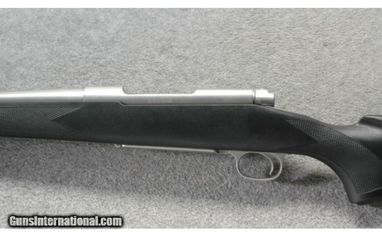 Description: This is a pre-owned Winchester Model 70 Classic Stainless BOSS in .338 Winchester Magnum with a 22” barrel. This rifle is in excellent condition, with just some very small scratches on the stock, and a couple of very small scratches on the metal. SOLD Caliber Info: .338 Winchester Magnum Metal Condition: Excellent condition with just some very small scratches on the metal. Wood Condition: Excellent condition with just some very small scratches on the stock. Bore Condition: Clean with bright lands. Barrels: 22Â? Stock: Checkered black synthetic. Stock Dimensions: 13 3/4Â? LOP Fore End: Checkered black synthetic. Butt Pad: Factory recoil pad. Weight: 7 ¾ lbs. Sights: Tapped for scope. Item Location: Glendale, AZ |