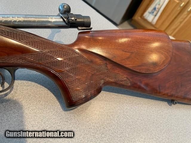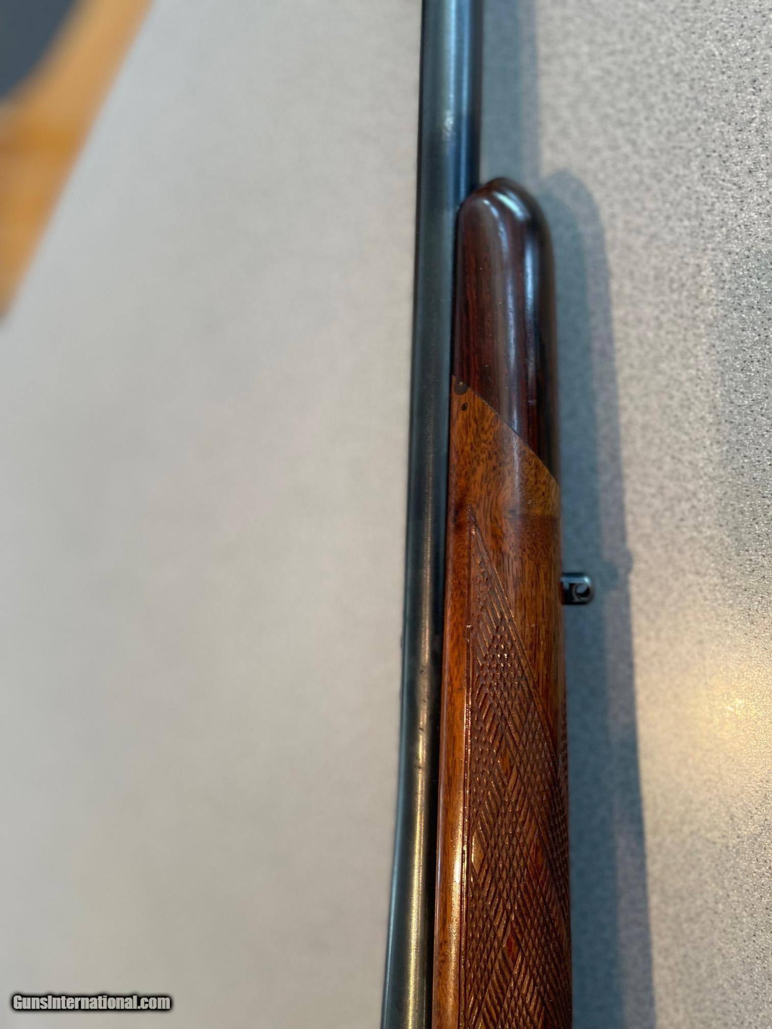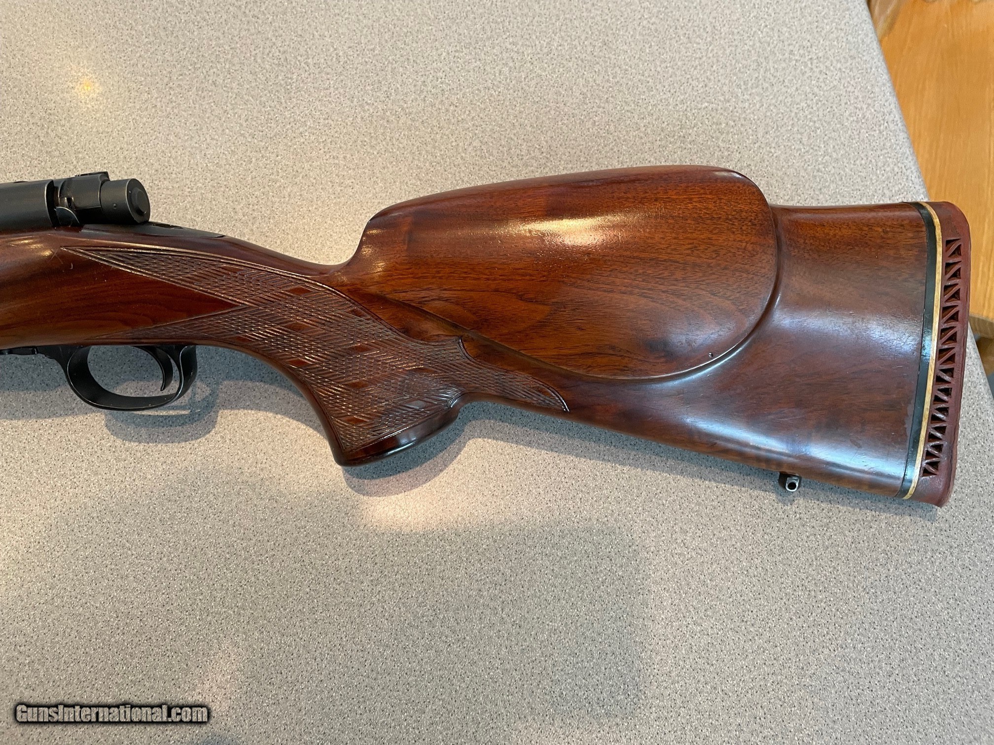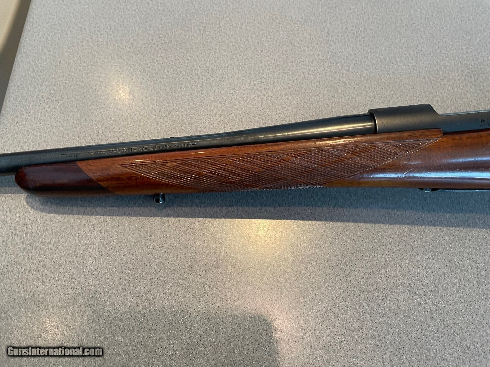 Description: Winchester Model 70 Caliber 7mm Rem Mag. 24" barrel. Custom stock carved and checkered Premium Walnut. Rosewood accents on forearm tip and pistol grip cap. S/n 784xxx Gun has carrying wear, wood has some minor dents. Floor plate slight scratches. Shipping negotiable Rifle is from a private collection. 4/2- 4/15-4/26-5/13-7/4 SOLD Rifle Caliber: 7mm Remington Magnum Manufacturer: Winchester Model: 70 Serial Number: 784xxx Barrel Length: 24 Condition: Very good Metal Condition: Some bluing wear Wood Condition: good to very good Bore Condition: Clean Polished Action: bolt Stock: custom Stock Cast: Right hand Monte Carlo Fiddle back Fore End: Rosewood LOP: 14 Manufacture Date: 1965 |