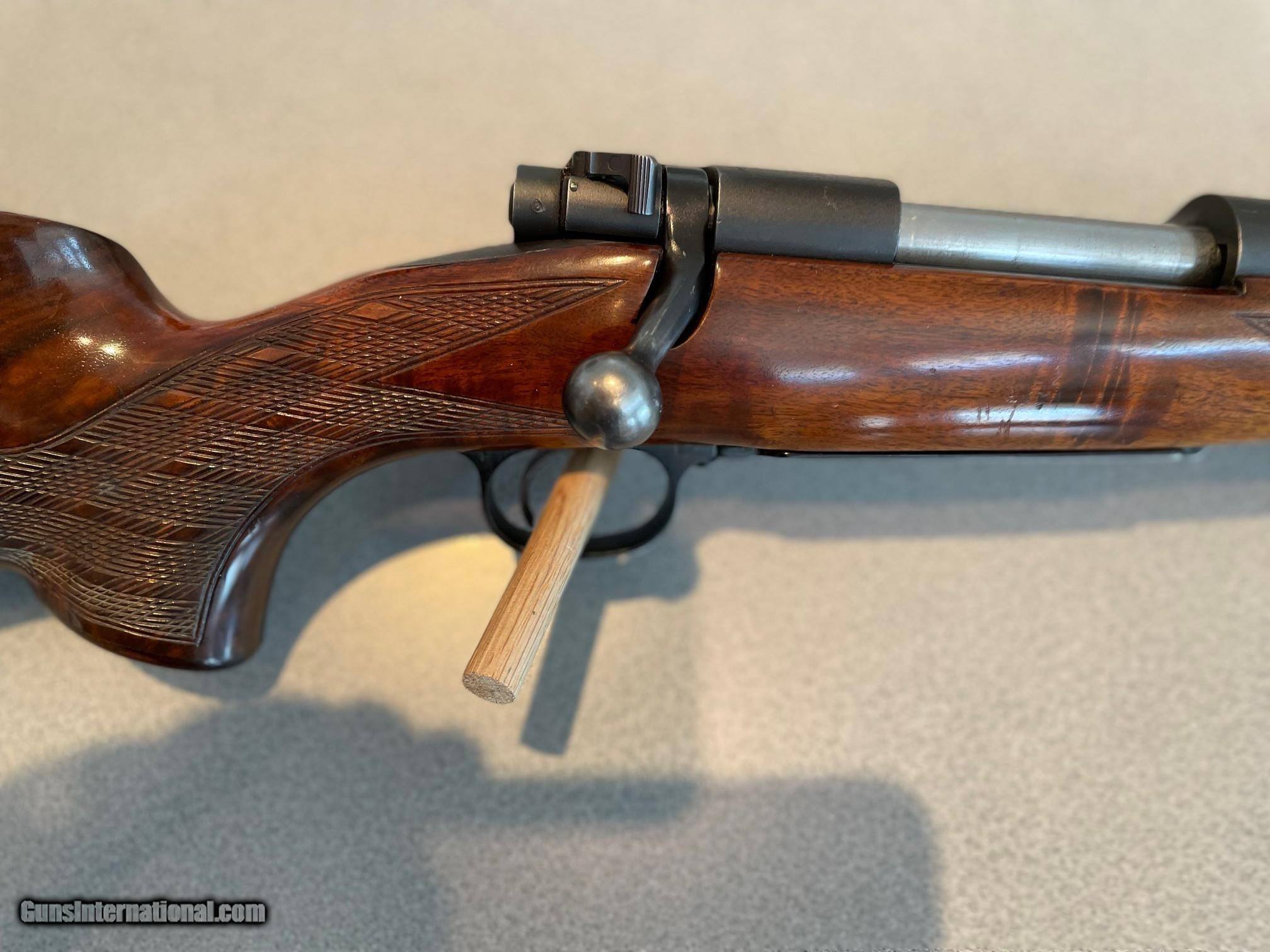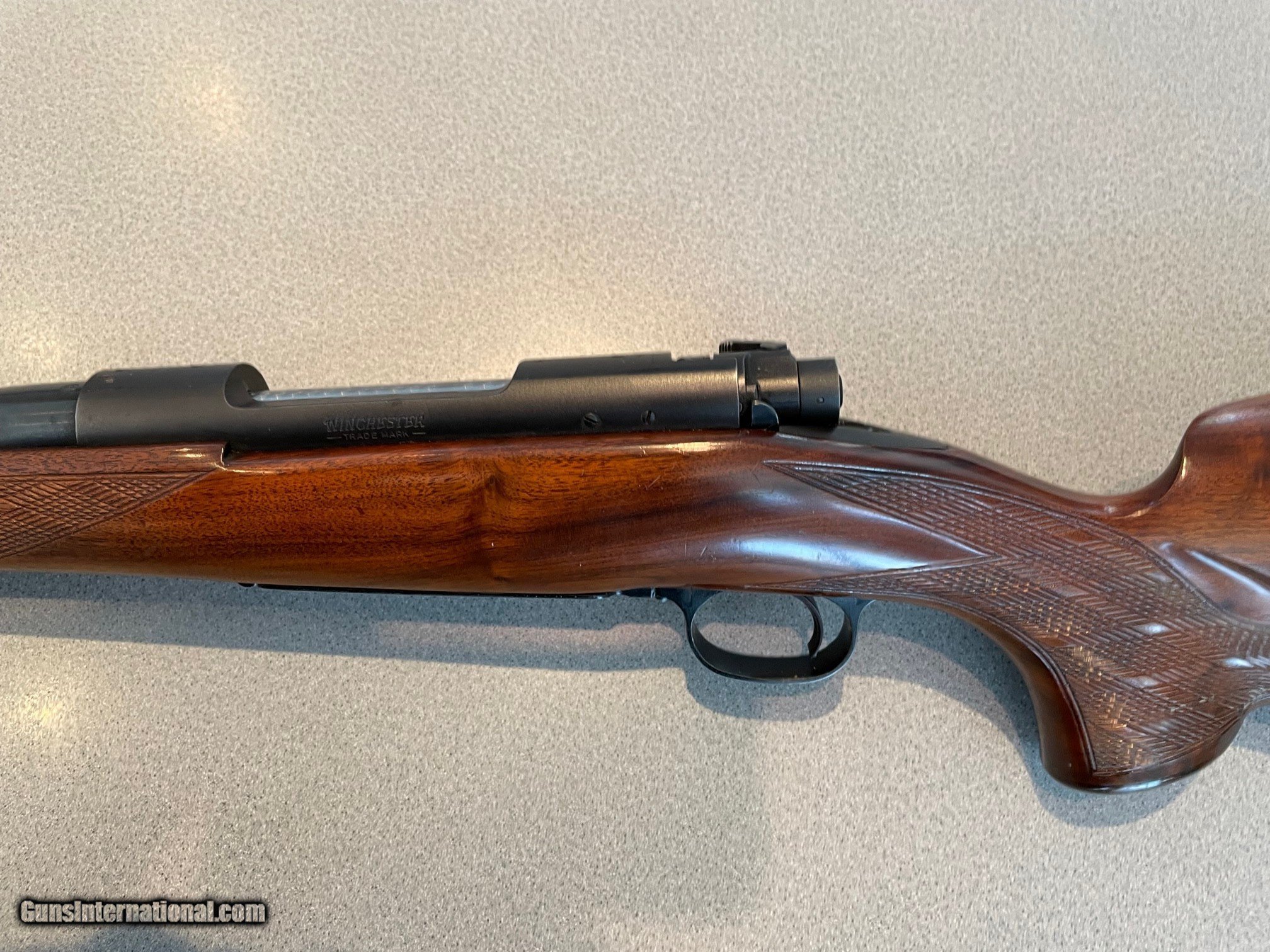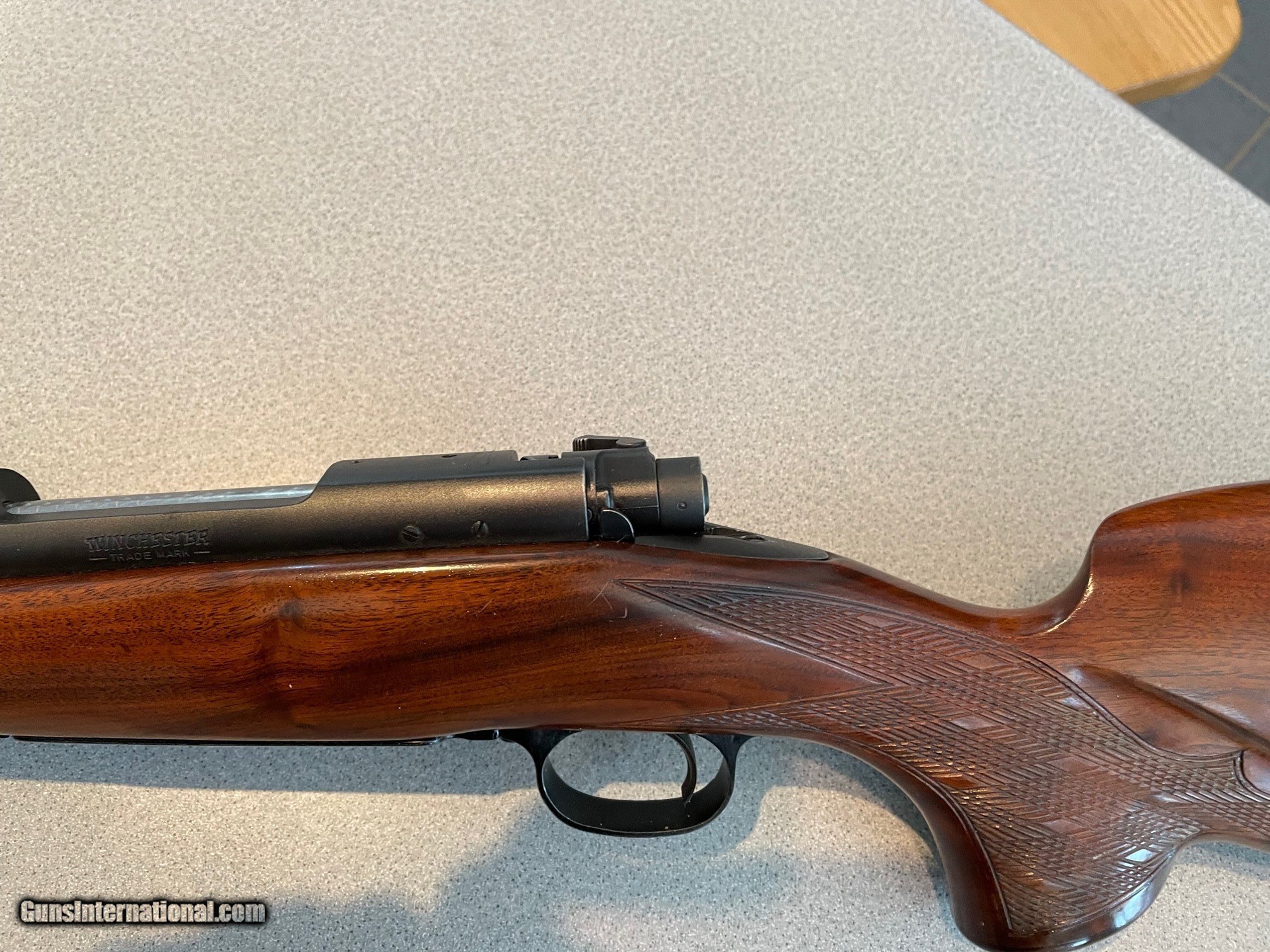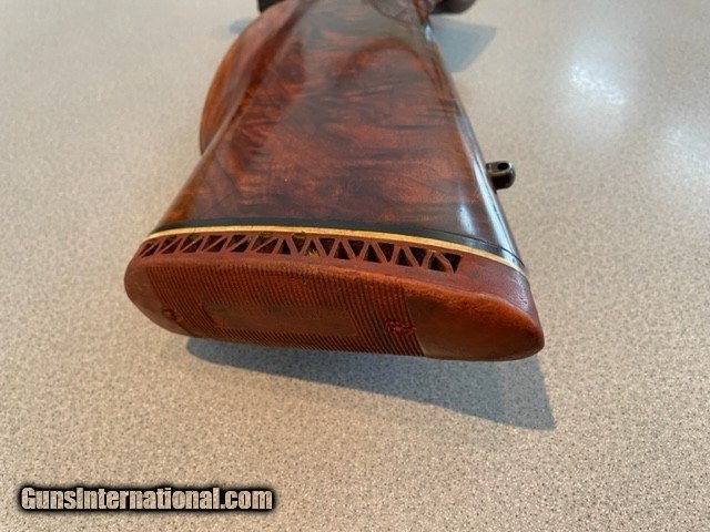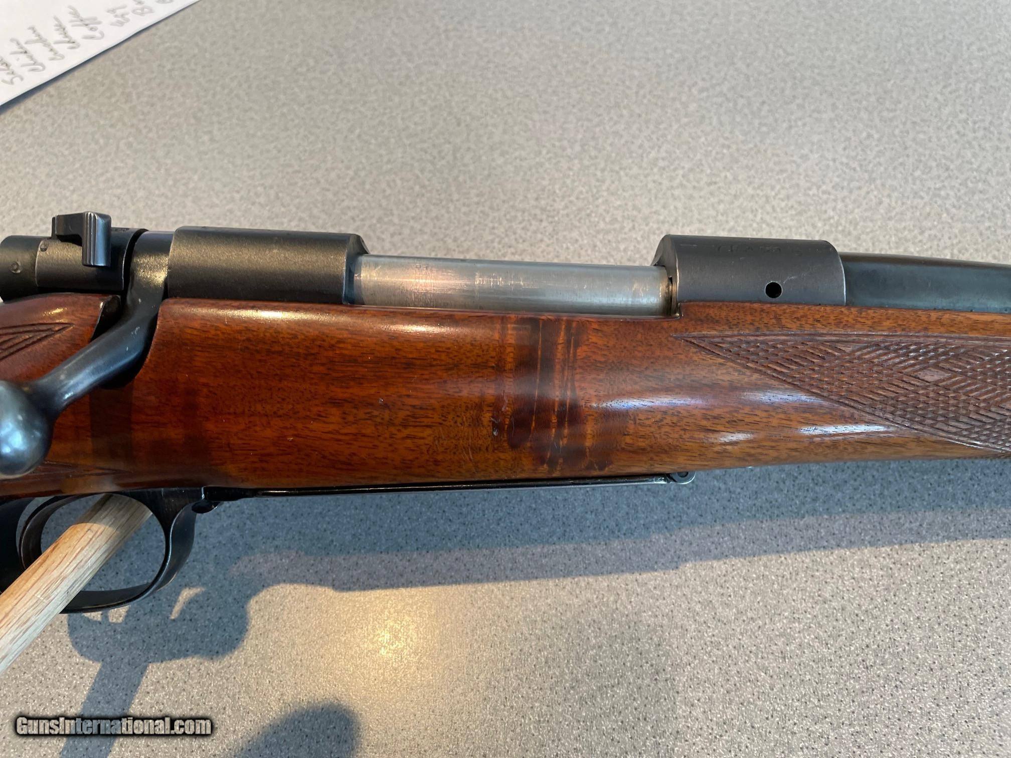 Description: Winchester Model 70 Caliber 7mm Rem Mag. 24" barrel. Custom stock carved and checkered Premium Walnut. Rosewood accents on forearm tip and pistol grip cap. S/n 784xxx Gun has carrying wear, wood has some minor dents. Floor plate slight scratches. Shipping negotiable Rifle is from a private collection. 4/2- 4/15-4/26-5/13-7/4 SOLD Rifle Caliber: 7mm Remington Magnum Manufacturer: Winchester Model: 70 Serial Number: 784xxx Barrel Length: 24 Condition: Very good Metal Condition: Some bluing wear Wood Condition: good to very good Bore Condition: Clean Polished Action: bolt Stock: custom Stock Cast: Right hand Monte Carlo Fiddle back Fore End: Rosewood LOP: 14 Manufacture Date: 1965 |